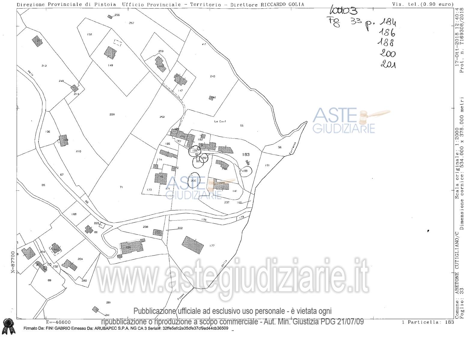 Vendita all'asta Senza incanto, con gara telematica asincrona - LOTTO 3: Piena proprietà di appezzamento di terreno di forma irregolare composto da 5 particelle catastali, della superficie catastale di mq. 3548. Prezzo base € 139.500,00 (offerta minima € 105.000,00). Data inizio operazioni di vendita: 16/04/2026 ore 10:00. Professionista delegato alla vendita Not. Angela Russo. Custode Giudiziario Isveg - Email "prenota.pt@isveg.it". Rif. Tribunale di Pistoia - Contenzioso civile n. 698/2024
