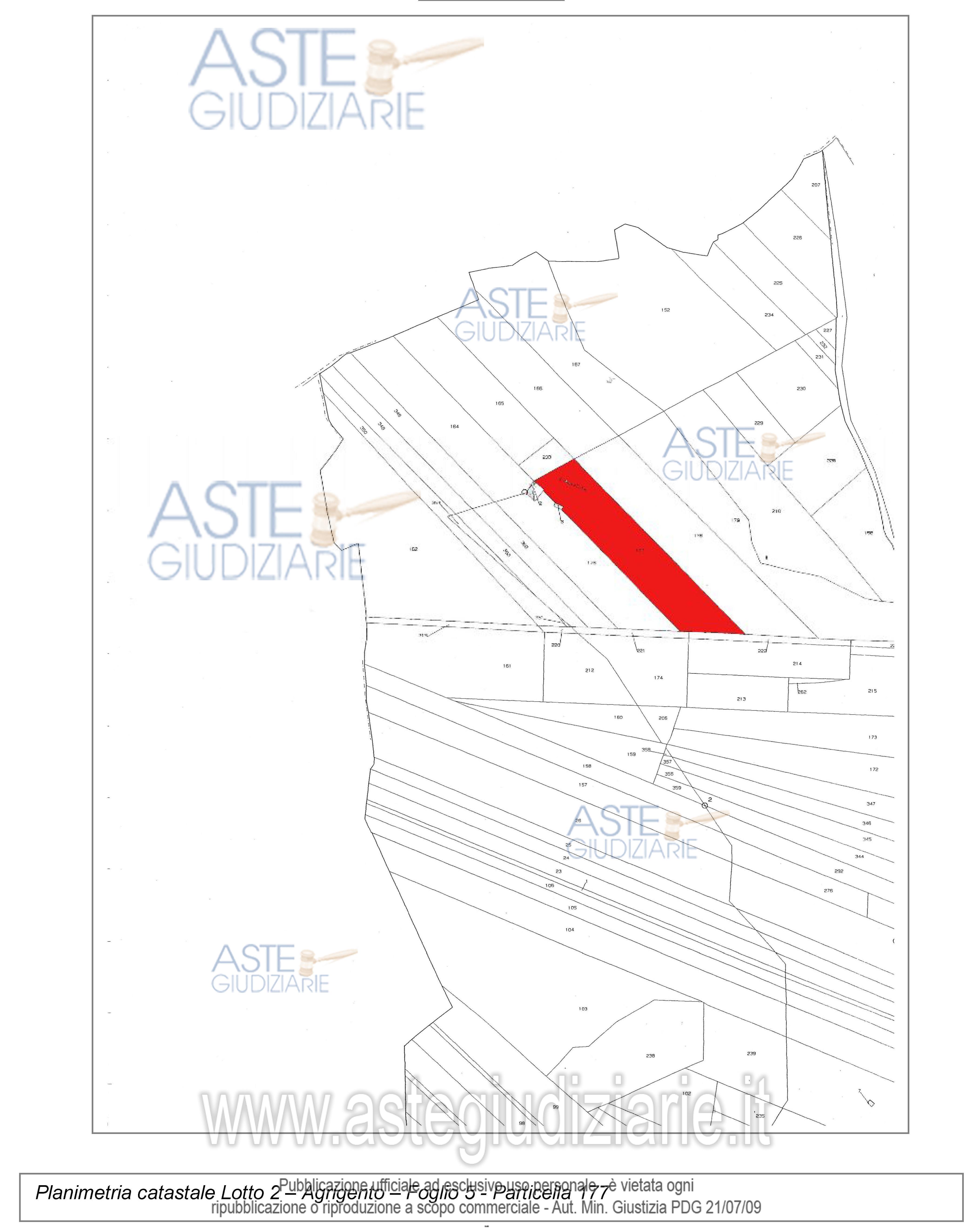 Vendita all'asta Senza incanto, con gara telematica asincrona - LOTTO 2: Diritti di proprietà su terreno agricolo. Prezzo base € 1.700,00 (offerta minima € 1.700,00). Data inizio operazioni di vendita: 08/04/2026 ore 11:00. In caso di più offerte valide si procederà a gara che inizierà il 08/04/2026 ore 11:00 e terminerà il 15/04/2026 ore 11:00. Giudice Dott. Federica Verro. Professionista delegato alla vendita Dott. Patrizia Di Francesco - Tel. 0922 29 247. Curatore Dott. Patrizia Di Francesco. Rif. Tribunale di Agrigento - Fallimentare (nuovo rito) n. 2127/2007