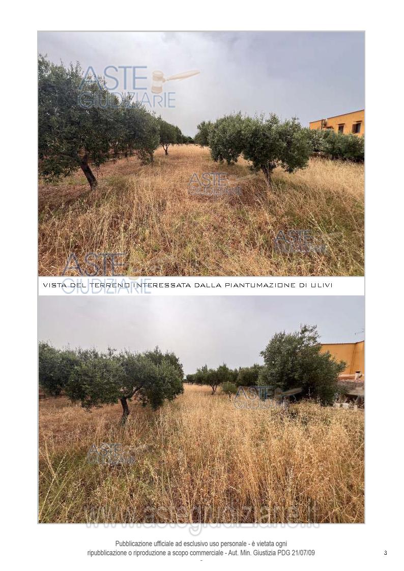 Vendita all'asta Senza incanto, con gara telematica asincrona - LOTTO 3: Diritti di piena proprietà per la quota di 1/3 su terreno avente consistenza mq. 7.850.L’appezzamento, di forma trapezoidale, ricade catastalmente su porzione del mappale 121 non correttamente inserito in mappa in quanto proveniente dal frazionamento prot. 414 del 18/09/1972 quest’ultimo non registrato nel database catastale. Prezzo base € 9.600,00 (offerta minima € 7.200,00). Data inizio operazioni di vendita: 11/02/2026 ore 11:00. In caso di più offerte valide si procederà a gara che inizierà il 11/02/2026 ore 11:00 e terminerà il 18/02/2026 ore 11:00. Giudice Dott. Silvia Capitano. Professionista delegato alla vendita Dott. Filippo Lo Franco - Tel. 091 589 740. Curatore Dott. Filippo Lo Franco. Rif. Tribunale di Agrigento - Liquidazione giudiziale(cci) n. 1/2024