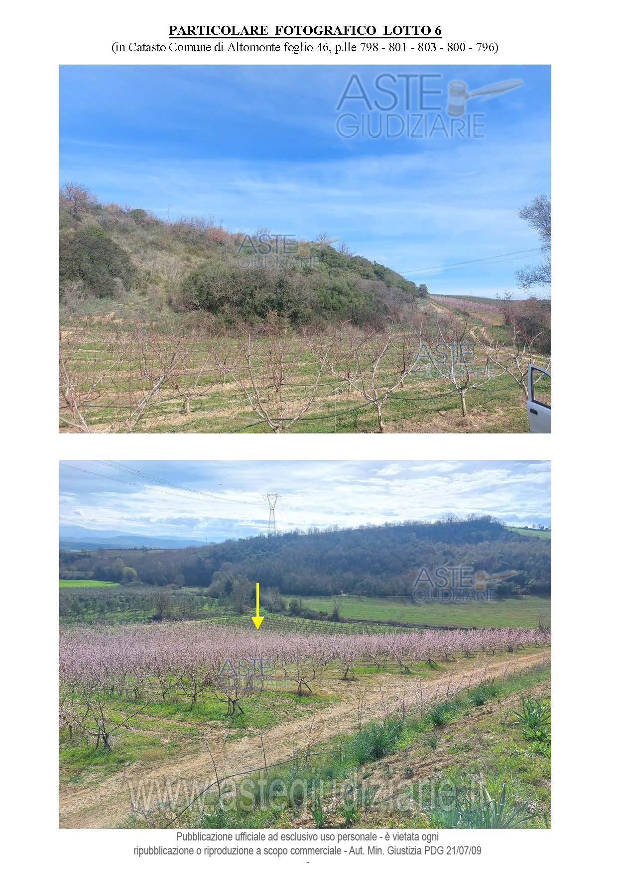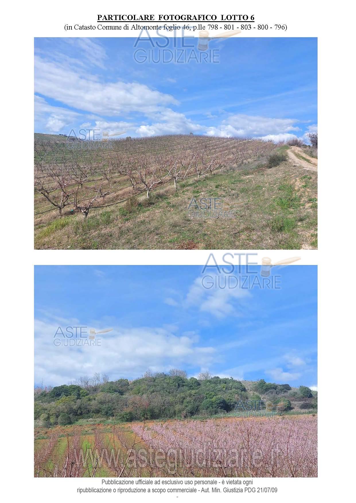 Vendita all'asta Senza incanto, con gara telematica sincrona - LOTTO 6: Terreni agricoli di ha 4,9480. Dati catastali: Comune di Altomonte, foglio 46: P.lla 796 (ex p.lla 441, a sua volta ex p.lla 17), di ha 1,9370; P.lla 798 (ex p.lla 459, a sua volta ex p.lla 17). Prezzo base € 97.399,50 (offerta minima € 73.049,63). Data vendita 19/05/2026 ore 16:30. Giudice Giuliana Gaudiano. Professionista delegato alla vendita Dott. Domenico Renda - Email "d.renda@studiorenda.net". Custode Giudiziario Dott. Domenico Renda - Email "d.renda@studiorenda.net"; Tel. 098133008. Rif. Tribunale di Castrovillari - Esecuzione immobiliare post legge 80 n. 66/2004