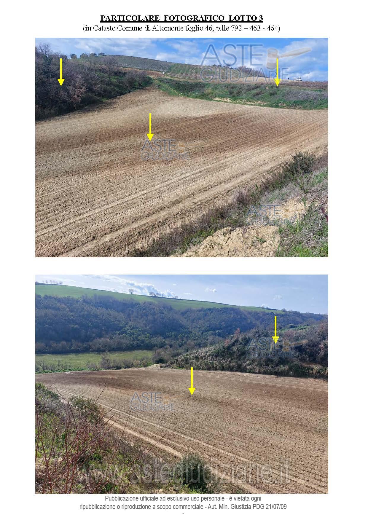 Vendita all'asta Senza incanto, con gara telematica sincrona - LOTTO 3: Lotto 3 - fondo agricolo di ha 4,3400. Dati catastali: Comune di Altomonte, foglio 46: p.lla 792 (ex p.lla 436, a sua volta ex p.lla 17), ha 1,3500; P.lla 463 (ex p.lla 102). Prezzo base € 48.244,50 (offerta minima € 36.183,38). Data vendita 19/05/2026 ore 16:30. Giudice Giuliana Gaudiano. Professionista delegato alla vendita Dott. Domenico Renda - Email "d.renda@studiorenda.net". Custode Giudiziario Dott. Domenico Renda - Email "d.renda@studiorenda.net"; Tel. 098133008. Rif. Tribunale di Castrovillari - Esecuzione immobiliare post legge 80 n. 66/2004
