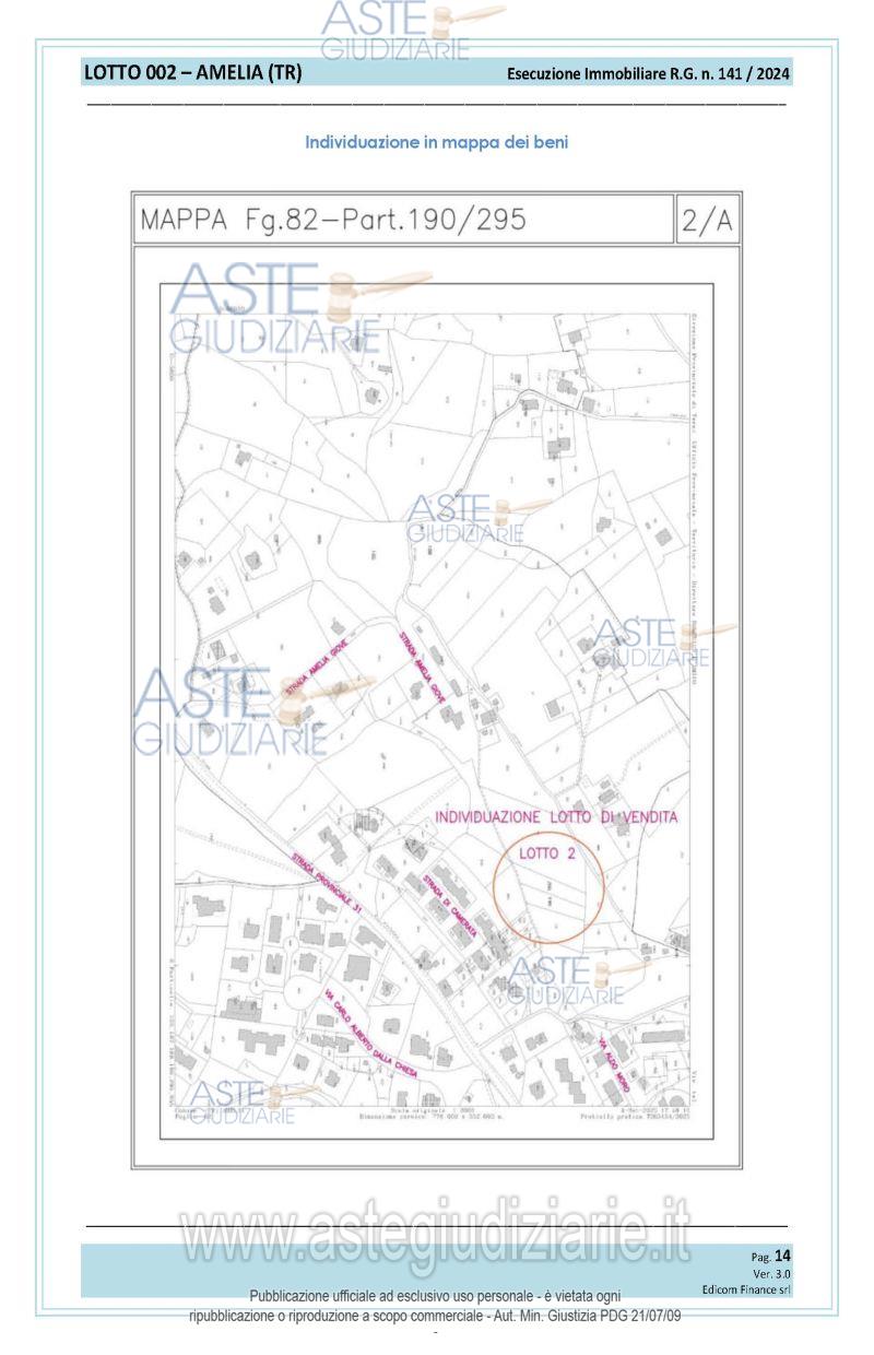 Vendita all'asta Senza incanto, con gara telematica asincrona - LOTTO 2: Piena proprietà per la quota di 1/1 di Terreni agricoli siti in Strada Amelia – Giove. Conformità edilizia: ConformeConformità urbanistica: ConformeDestinazione urbanistica: Zona omogenea E1- Aree Agricole Normali (vedi relazione di stima) L’immobile NON risulta occupato. Il tutto meglio descritto nella perizia di stima. Prezzo base € 3.500,00 (offerta minima € 2.625,00). Data inizio operazioni di vendita: 10/03/2026 ore 10:00. Giudice Tommaso Bellei. Professionista delegato alla vendita Avv. Tiberi - Email "studiotiberi@inwind.it"; Tel. 0744431194. Custode Giudiziario Avv. Tiberi - Email "studiotiberi@inwind.it"; Tel. 0744431194. Rif. Tribunale di Terni - Espropriazione immobiliare (cartabia) n. 141/2024