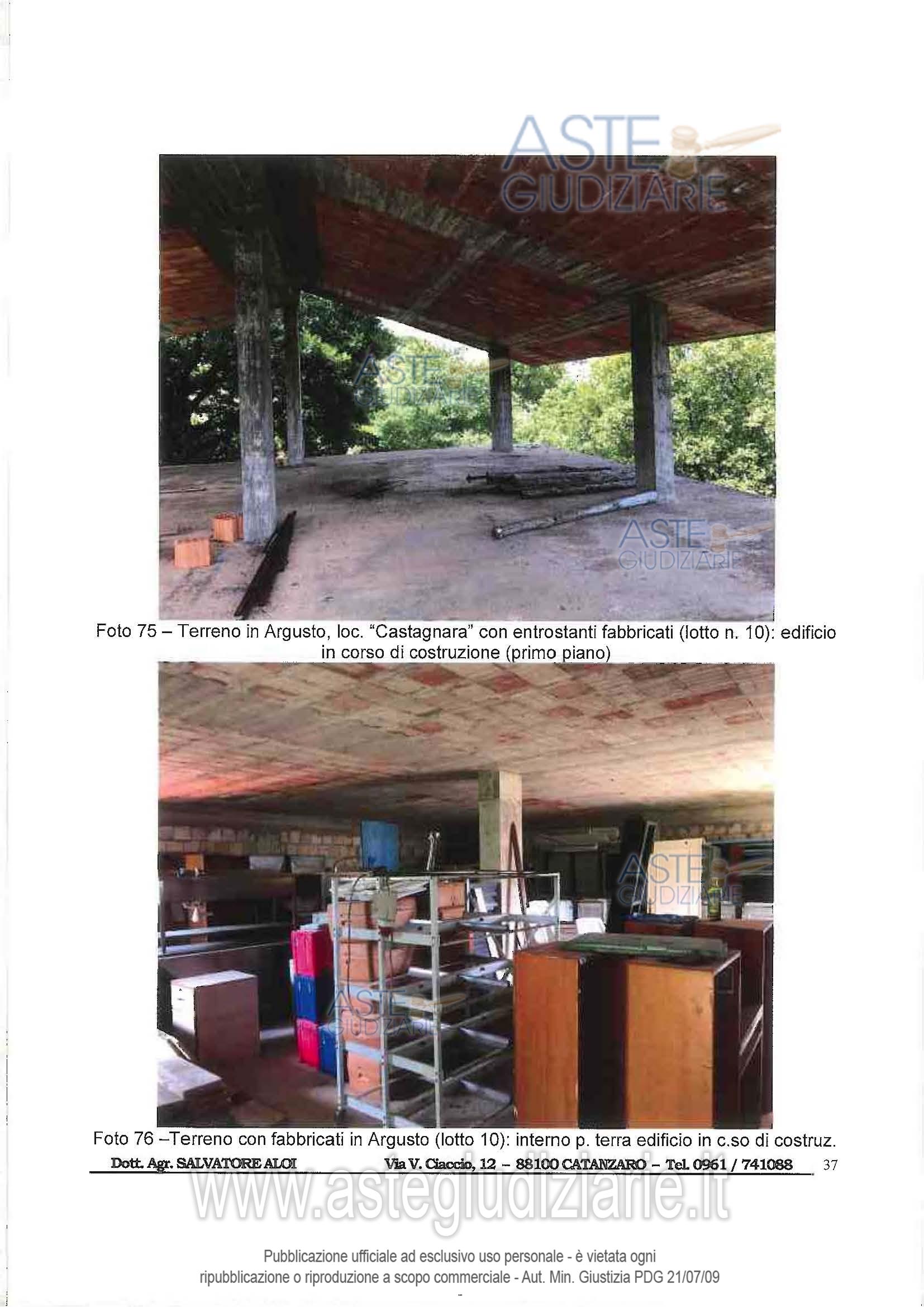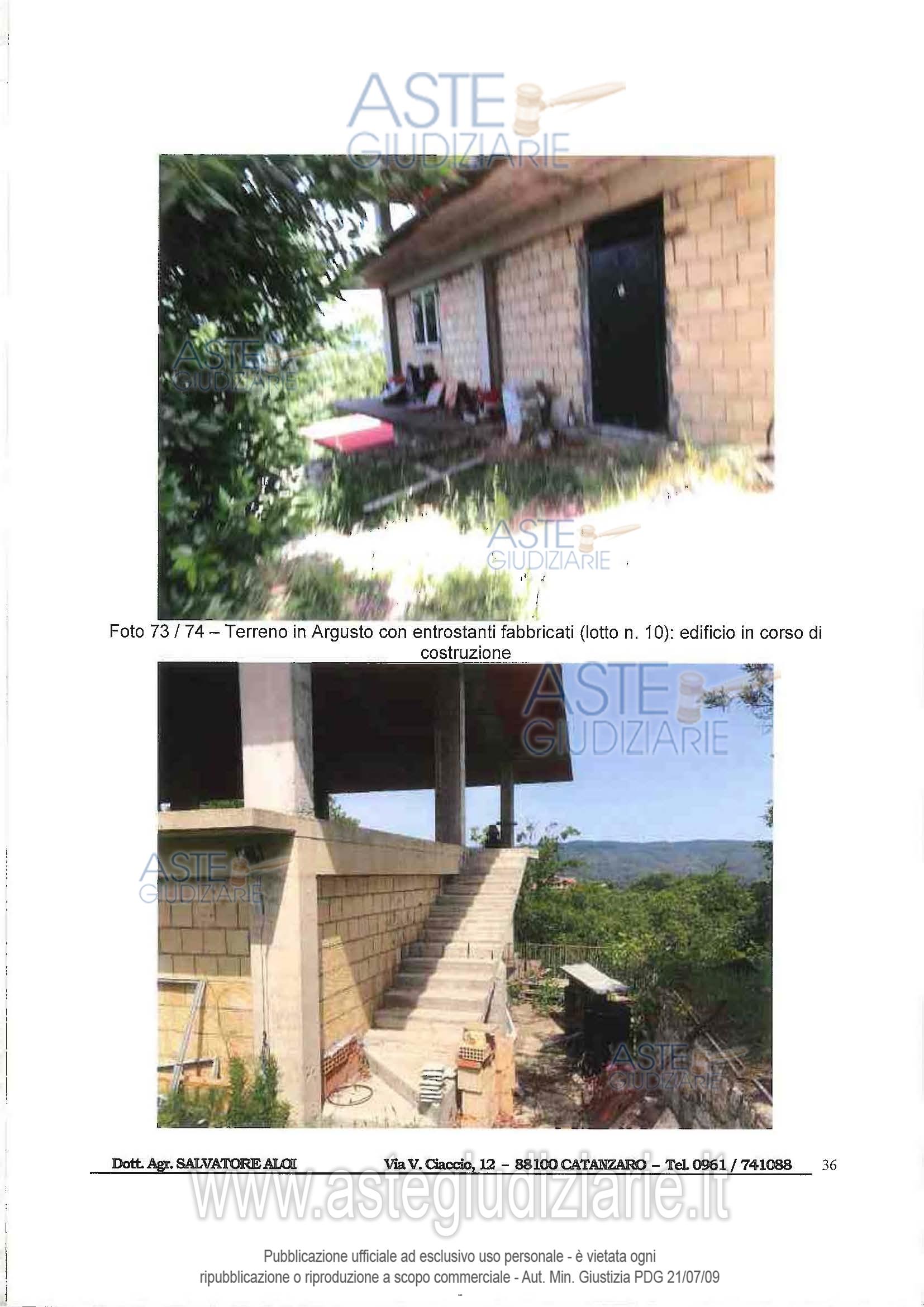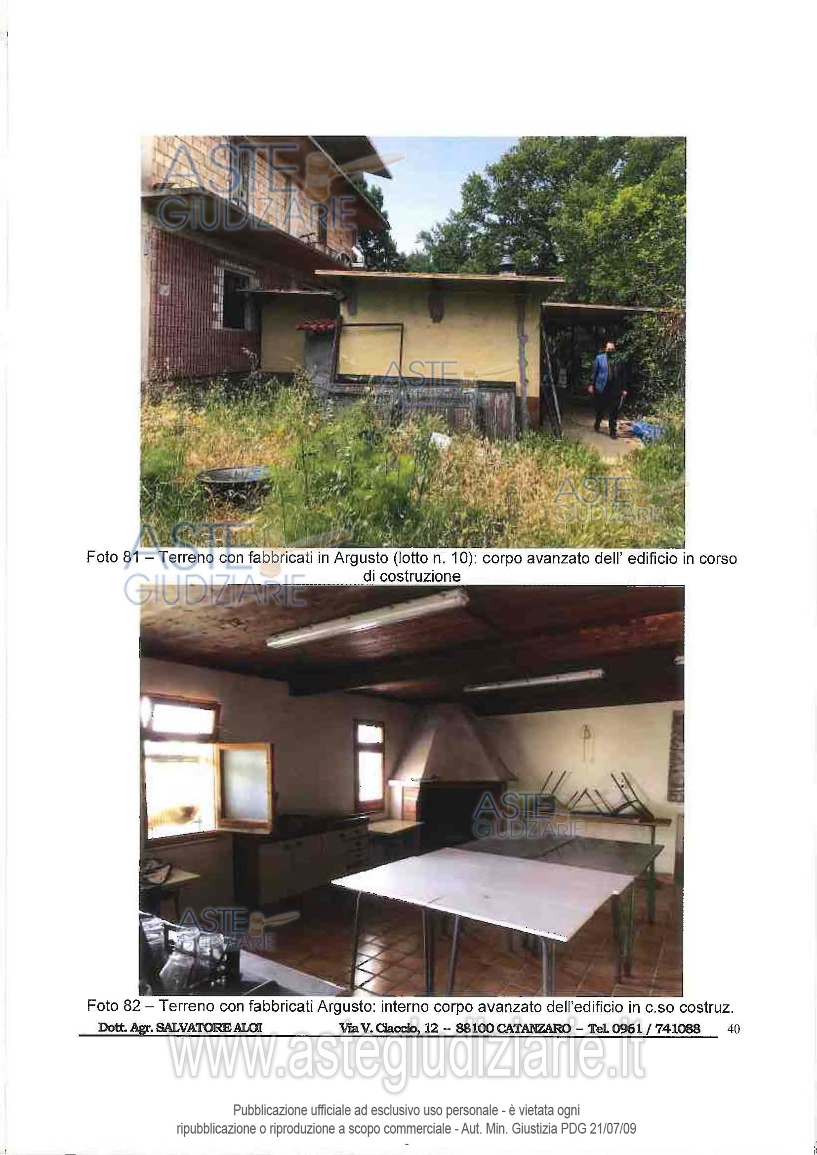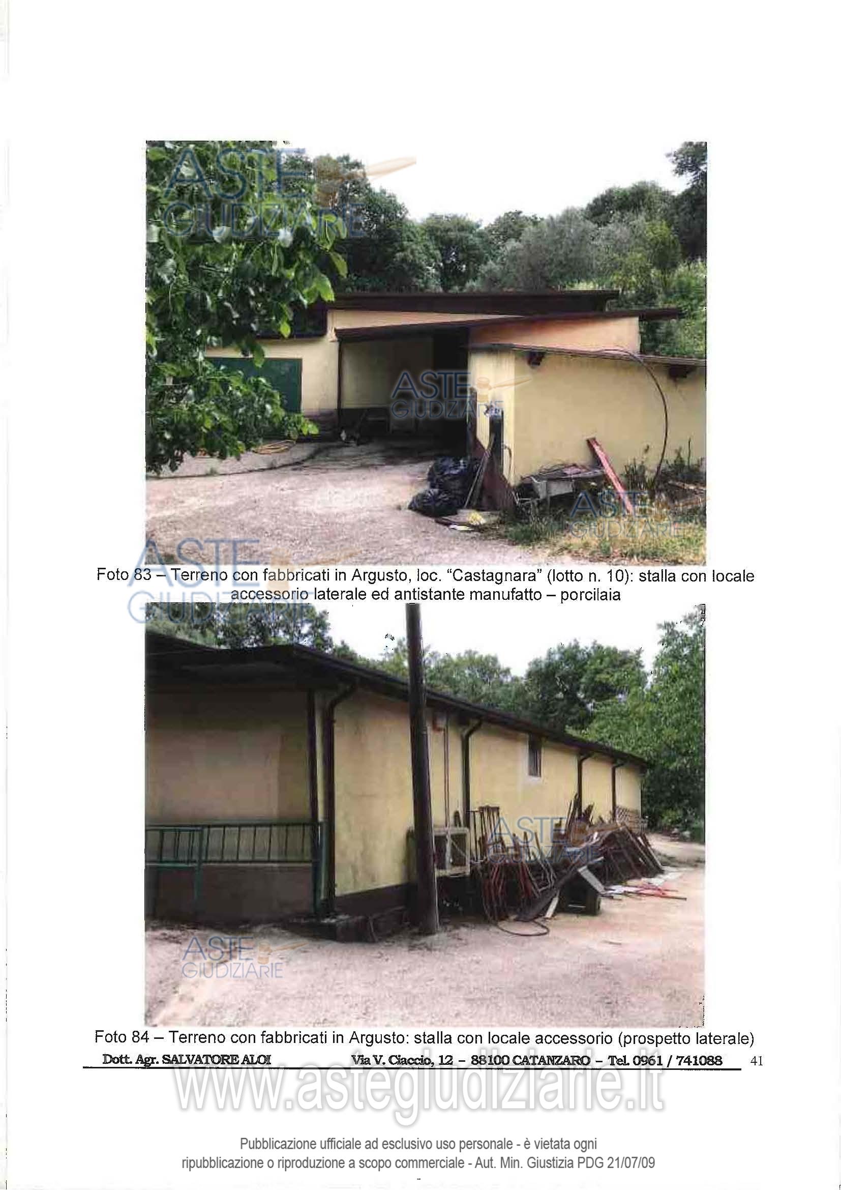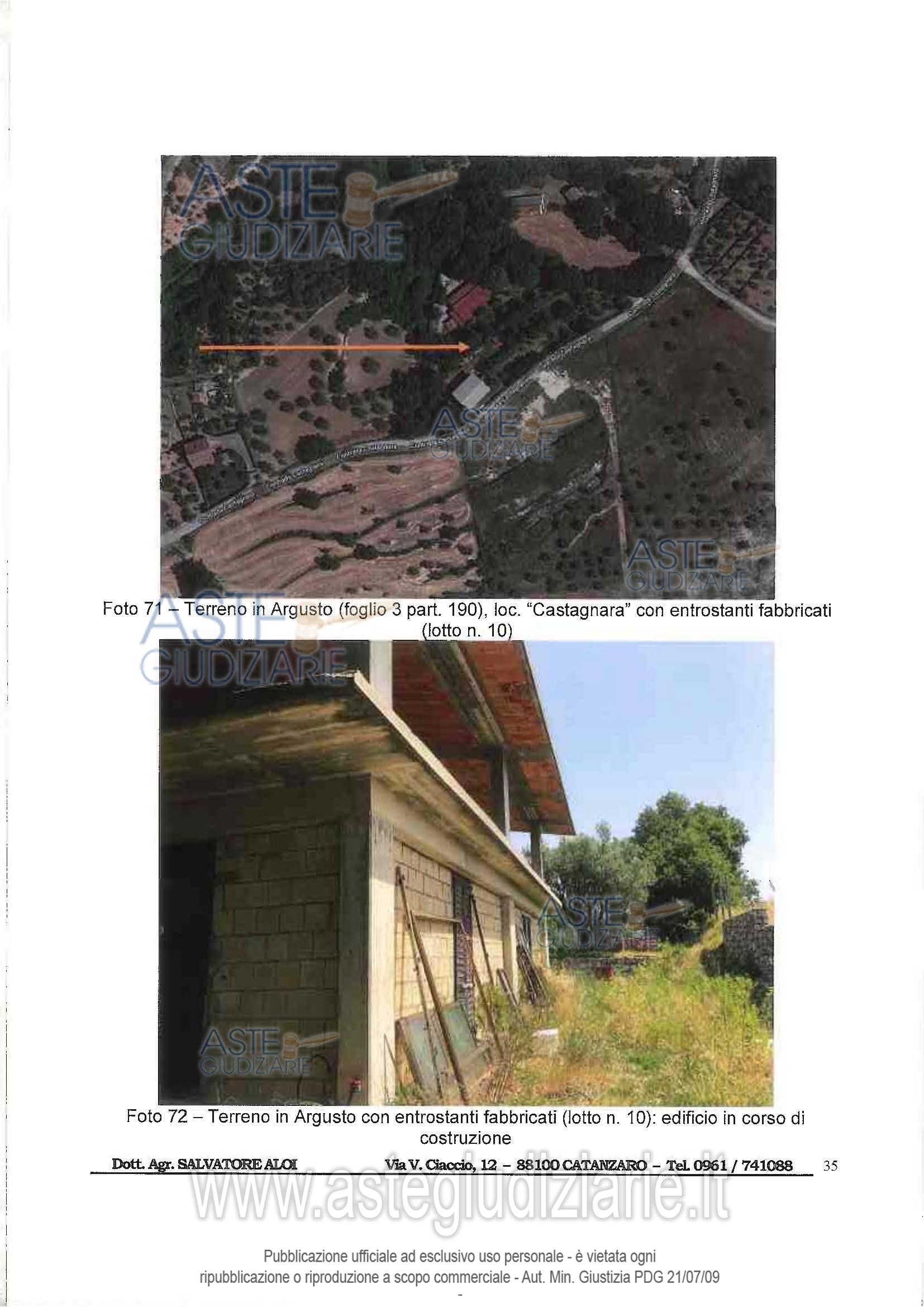 Vendita all'asta Senza incanto, con gara telematica asincrona - LOTTO 10: Piena proprietà di terreno agricolo sito in Argusto (CZ) alla loc. “Castagnara”, con entrostanti edificazioni, superficie complessiva di mq. 5.290 circa, in Catasto Terreni dal F. 3, p.lla 190, qualità Seminativo, classe 2, Sup. mq. 5.290, Redd. Dom. € 15,03, Redd. Agr. € 4,92; il tutto come meglio descrittonella relazione tecnica di stima a firma del Dott. Agr. Salvatore Aloi, esperto nominato dal GE nella procedura RGE 76/2019. Prezzo base € 28.152,00 (offerta minima € 21.114,00). Data inizio operazioni di vendita: 05/05/2026 ore 10:00. Professionista delegato alla vendita Not. Rocco Guglielmo - Email "rguglielmo@notariato.it"; Tel. 0961 745517. Custode Giudiziario Not. Rocco Guglielmo - Email "rguglielmo@notariato.it"; Tel. 0961745517. Rif. Tribunale di Catanzaro - Esecuzione immobiliare post legge 80 n. 40/2013