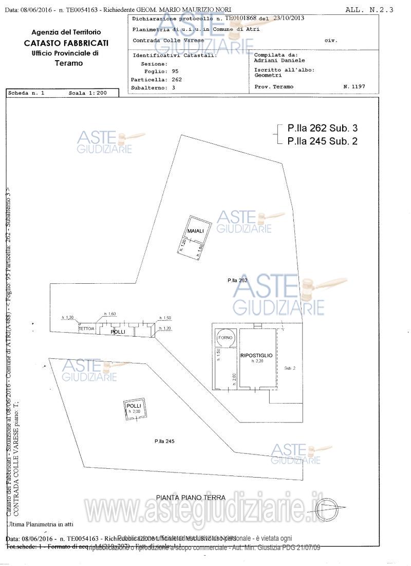 Vendita all'asta Senza incanto, con gara telematica asincrona - LOTTO 1: Diritti corrispondenti alla nuda proprietà per la quota di 1/2, usufrutto per la quota di 1/2 ed alla piena proprietà per la quota di 1/2 relativi a Fabbricato Civile ed annessi agricoli ad uso stalle e fienile con terreno agricolo circostante, ubicato ad Atri (TE) in contrada Colle Varese. Il lotto è composto da Abitazione, Locali di sgombero accessori all’abitazione, Stalla, Tettoia e Terreno agricolo circostante. Prezzo base € 74.756,25 (offerta minima € 56.067,19). Data inizio operazioni di vendita: 29/04/2026 ore 10:00. Professionista delegato alla vendita Dott. Gabriele Di Battista - Email "info@studiodibarec.it"; Tel. 0861588275. Custode Giudiziario Avv. Daniele D'ambrosio - Email "avv.danieledambrosio@gmail.com"; Tel. 3208878996. Rif. Tribunale di Teramo - Esecuzione immobiliare post legge 80 n. 331/2014