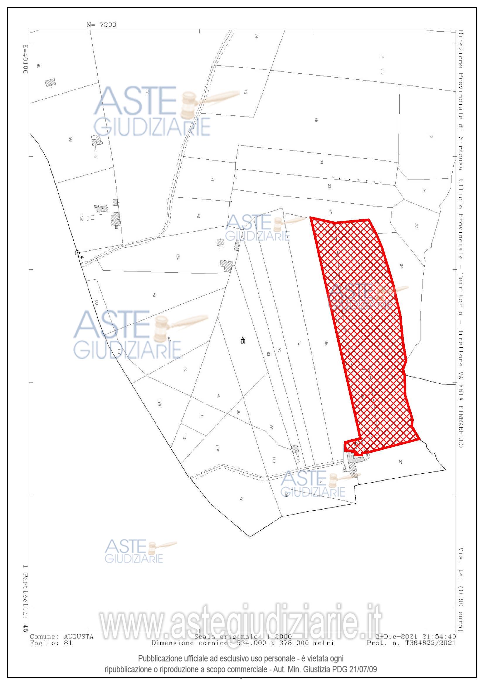 Vendita all'asta Senza incanto, con gara telematica sincrona mista - LOTTO 1: 1/1 di proprietà di terreno in Augusta, c.da Sabuci, nel C.T. al fg. 81, p.lle 26, 28, 29, 45, 48 e 83 e fg. 82, p.lla 14.Disponibilità del bene: ad oggi è libero. Prezzo base € 16.453,11 (offerta minima € 12.339,83). Data vendita 19/11/2025 ore 11:00. Giudice Alessia Romeo. Professionista delegato alla vendita Avv. Luca Bianchi - Email "lucbian1973@gmail.com"; Tel. 0931492345. Custode Giudiziario Avv. Luca Bianchi - Email "lucbian1973@gmail.com"; Tel. 0931492345. Rif. Tribunale di Siracusa - Esecuzione immobiliare post legge 80 n. 95/2021