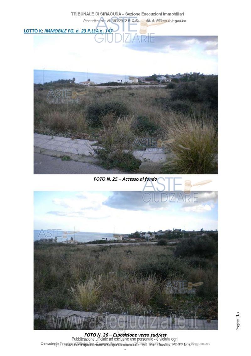 Vendita in attesa dell'emissione del nuovo bando d'asta. LOTTO 1: Compendio immobiliare sito in Augusta (SR), Contrada Campolato Basso, costituito da n. 23 tratti di terreno non recintati e attualmente incolti, aventi potenzialità edificatoria. Ultimo prezzo base € 1.563.188,00 (offerta minima € 1.172.391,00). Professionista delegato alla vendita Avv. Orazio Torrisi - Email "orazio-torrisi@virgilio.it"; Tel. 095416547. Custode Giudiziario Avv. Orazio Torrisi - Email "orazio-torrisi@virgilio.it"; Tel. 095416547. Rif. Tribunale di Siracusa - Esecuzione immobiliare post legge 80 n. 383/2012
