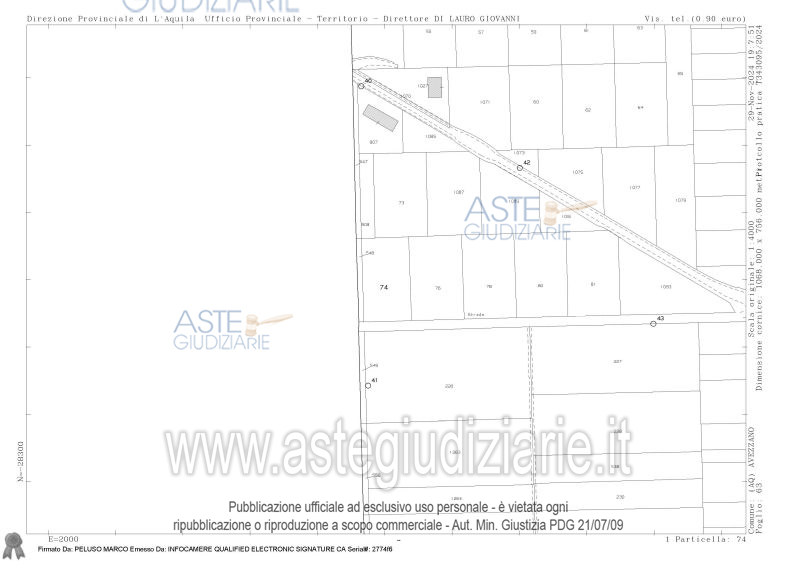 Vendita all'asta Senza incanto, con gara telematica asincrona - LOTTO UNICO: Terreno agricolo sito nella piana del Fucino a 3,5 km. da Avezzano (AQ). Prezzo base € 32.793,75 (offerta minima € 24.595,31). Data inizio operazioni di vendita: 15/04/2026 ore 15:00. Professionista delegato alla vendita Avv. Roberto Walter Berardini - Email "roberto.berardini@virgilio.it"; Cell. 3490608911; Tel. 0863444247. Custode Giudiziario Avv. Roberto Walter Berardini - Email "roberto.berardini@virgilio.it"; Cell. 3490608911; Tel. 0863444247. Rif. Tribunale di Avezzano - Espropriazione immobiliare (cartabia) n. 60/2024