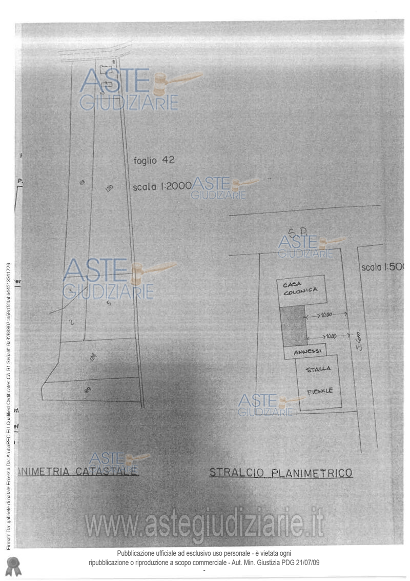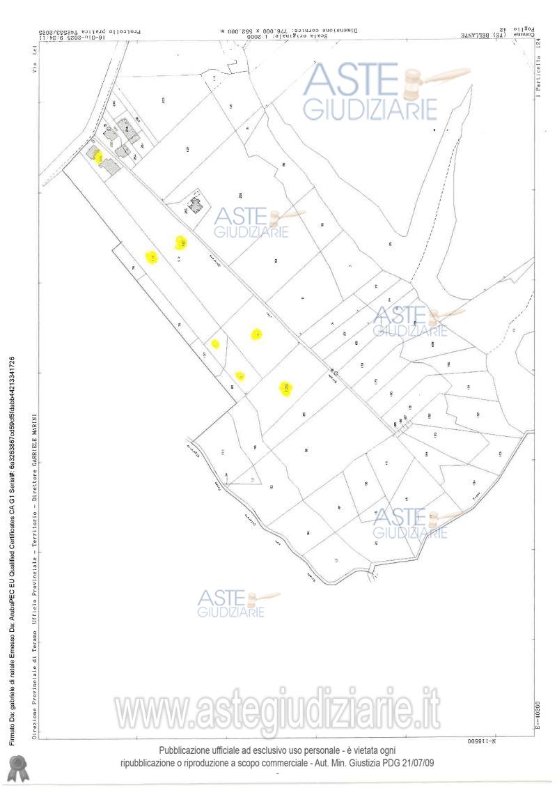 Vendita all'asta Senza incanto, con gara telematica asincrona - LOTTO 1: Diritti pari all'intero della Nuda Proprietà su appezzamento di terreno con soprastante fabbricato colonico su due livelli, rimessa attrezzi, annessi, stalla, fienile e strutture prefabbricate destinate a ricovero animali e fienile. Prezzo base € 22.950,00 (offerta minima € 22.950,00). Data inizio operazioni di vendita: 20/05/2026 ore 15:00. Giudice Ninetta Dignazio. Custode Giudiziario Geom. Gabriele Di Natale - Email "info@studiodinatale.it". Curatore Dott. Angiolino Di Francesco. Rif. Tribunale di Teramo - Liquidazione giudiziale(cci) n. 42/2024