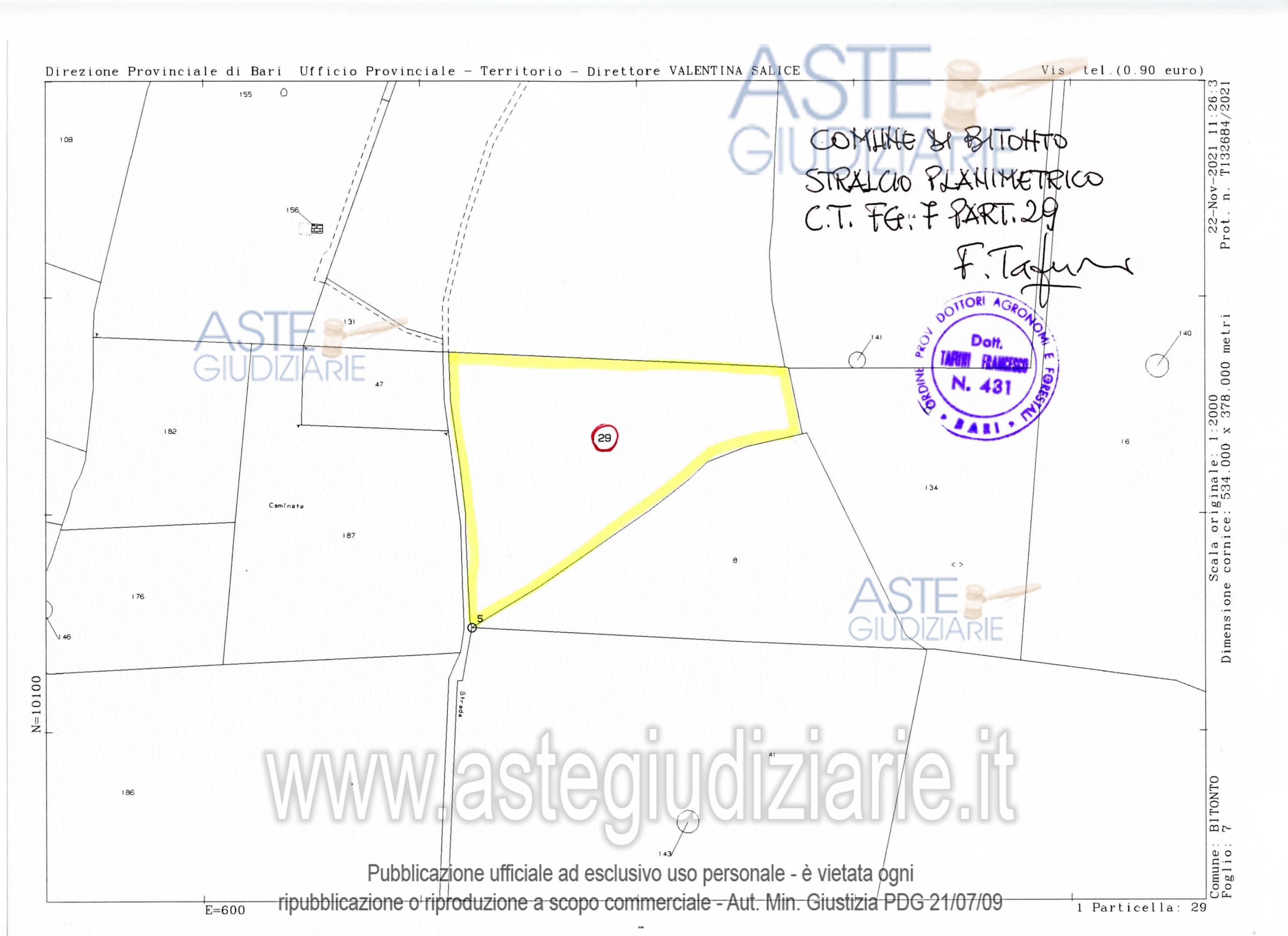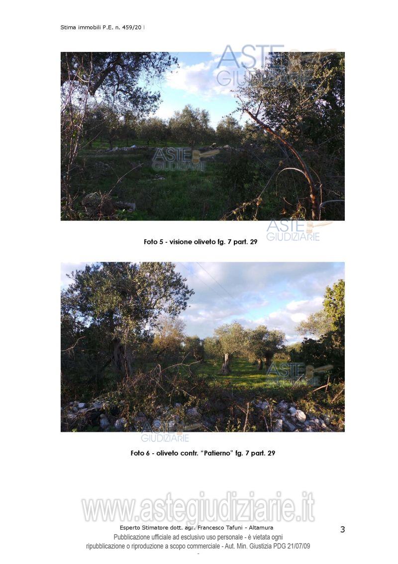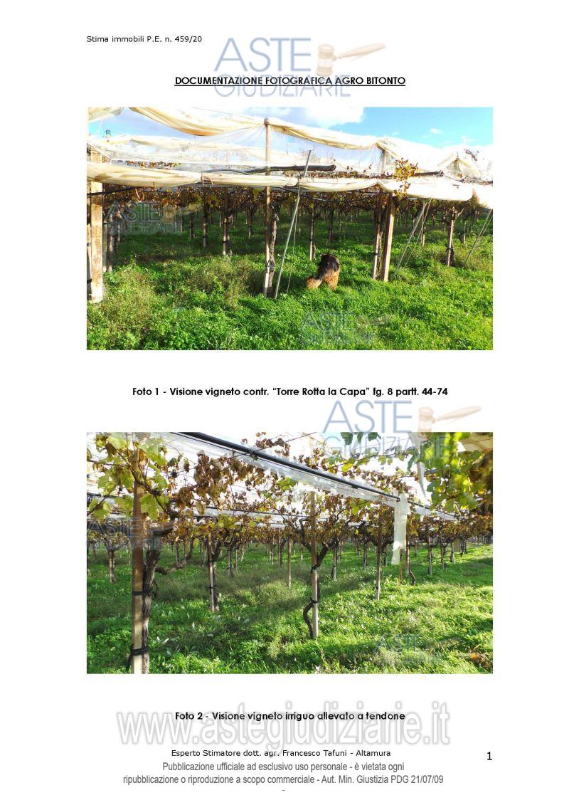 Vendita all'asta Senza incanto, con gara telematica asincrona - LOTTO 2: Piena proprietà di n. 5 particelle agricole (investite a vigneto e uliveto) distinte in tre fondi rustici, della superficie totale di HA. 2.55.38. Prezzo base € 39.581,00 (offerta minima € 29.685,75). Data inizio operazioni di vendita: 11/12/2025 ore 12:00. Giudice Dott. Antonio Ruffino. Professionista delegato alla vendita Dott. Anna Lucia Muserra - Email "studiomuserra@gmail.com"; Tel. 0805275646. Custode Giudiziario Dott. Anna Lucia Muserra - Email "studiomuserra@gmail.com"; Tel. 0805275646. Rif. Tribunale di Bari - Esecuzione immobiliare post legge 80 n. 459/2020