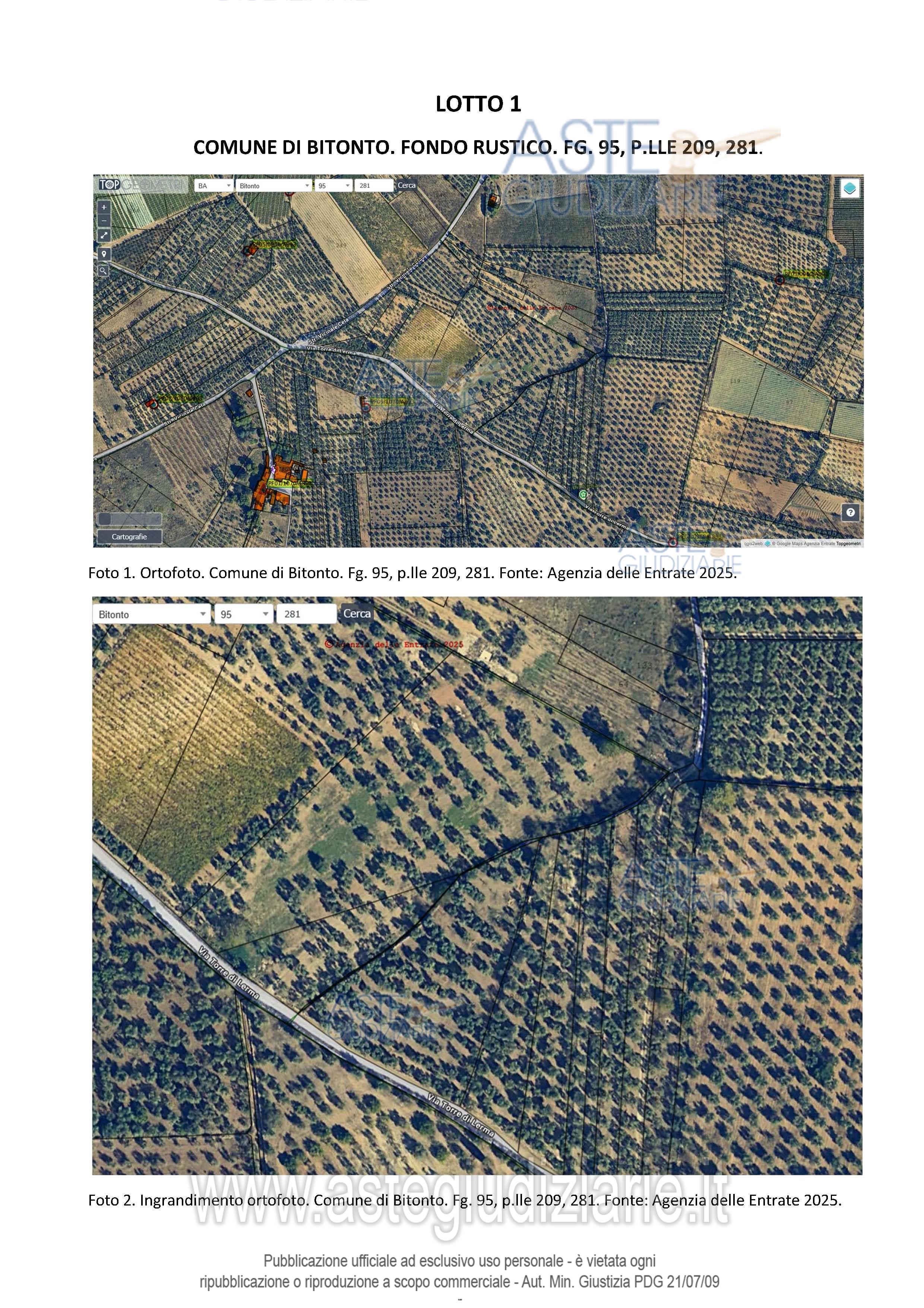 Vendita all'asta Senza incanto, con gara telematica asincrona - LOTTO 1: Full and perfect ownership of a rustic property consisting of two adjacent land plots, with around 150 olive trees in good condition, located in the Torre dell’Eramo area, with access from Torre di Lerma street, with a total area of approximately 11,830 square meters. Prezzo base € 27.700,00 (offerta minima € 20.775,00). Data inizio operazioni di vendita: 08/01/2026 ore 10:00. Giudice Dott. Maria Azzurra Guerra. Professionista delegato alla vendita Dott. Giovanna Panzuto. Custode Giudiziario Aste Giudiziarie Inlinea Spa - Email "vendite@astegiudiziarie.it"; Tel. 0586 201480. Rif. Tribunale di Trani - Liquidazione controllata(cci) n. 36/2024