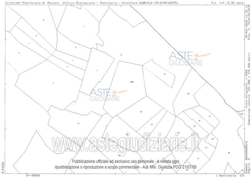 Vendita all'asta Senza incanto, con gara telematica asincrona - LOTTO 3: intera piena proprietà di appezzamenti di terreno ubicati in Comune di Bolognano (PE) allalocalità Colle Morto.bene n.6 – Totale superficie convenzionale: circa mq.13.790,00.bene n.7 – Totale superficie convenzionale: circa mq.172.813,00.bene n.8 – Totale superficie convenzionale: circa mq.13.950,00.bene n.9 – Totale superficie convenzionale: circa mq.38.450,00.bene n.10 – Totale superficie convenzionale: circa mq.9.410,00.bene n.11 – Totale superficie convenzionale: circa mq.40.610,00. Prezzo base € 167.147,55 (offerta minima € 125.360,66). Data inizio operazioni di vendita: 31/03/2026 ore 10:30. Professionista delegato alla vendita Avv. Pier Luigi De Rosa - Email "avvpierluigiderosa@virgilio.it;avvantonello@derosastudiolegale.com"; Tel. 085375200. Custode Giudiziario Avv. Pier Luigi De Rosa - Email "avvpierluigiderosa@virgilio.it;avvantonello@derosastudiolegale.com"; Tel. 085375200. Rif. Tribunale di Pescara - Esecuzione immobiliare post legge 80 n. 231/2018