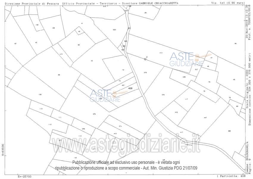 Vendita all'asta Senza incanto, con gara telematica asincrona - LOTTO 7: bene n.21 – intera piena proprietà di appezzamenti di terreno ubicati in Comune di Bolognano (PE) alla località Rotolo. Totale superficie convenzionale: circa mq.3.400,00. Prezzo base € 2.550,00 (offerta minima € 1.912,50). Data inizio operazioni di vendita: 31/03/2026 ore 10:30. Professionista delegato alla vendita Avv. Pier Luigi De Rosa - Email "avvpierluigiderosa@virgilio.it;avvantonello@derosastudiolegale.com"; Tel. 085375200. Custode Giudiziario Avv. Pier Luigi De Rosa - Email "avvpierluigiderosa@virgilio.it;avvantonello@derosastudiolegale.com"; Tel. 085375200. Rif. Tribunale di Pescara - Esecuzione immobiliare post legge 80 n. 231/2018