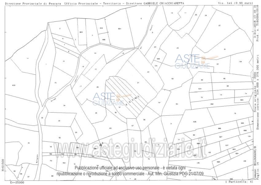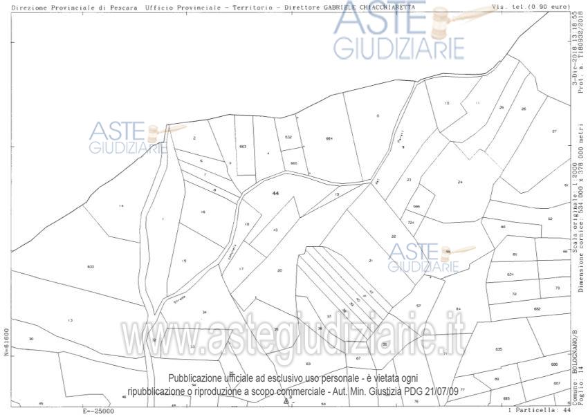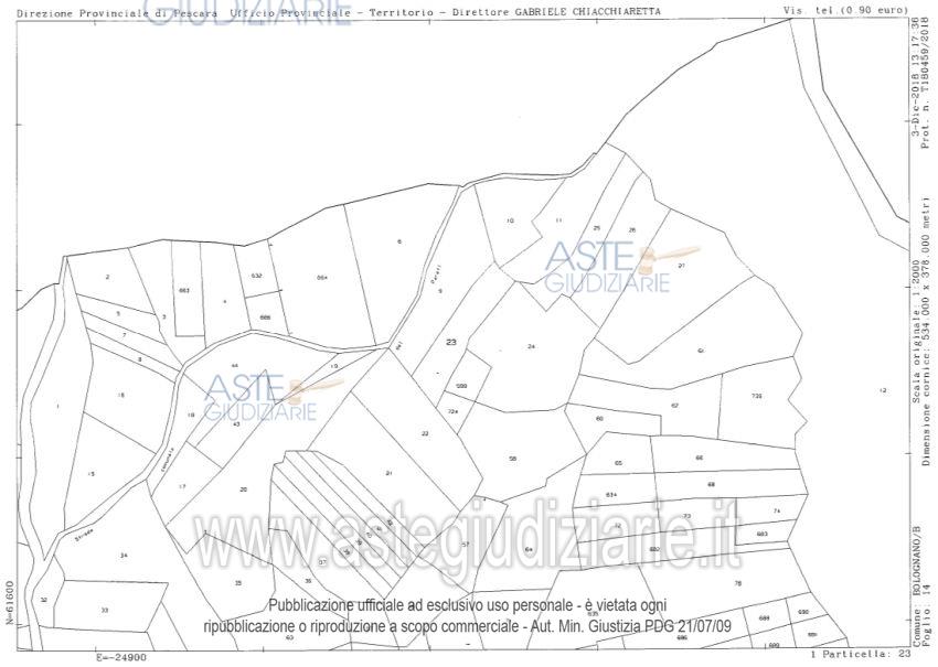 Vendita all'asta Senza incanto, con gara telematica asincrona - LOTTO 11: intera piena proprietà di appezzamenti di terreno ubicati in Comune di Bolognano (PE) allacontrada Colle Bianco, località Musellaro.bene n.28 – Totale superficie convenzionale: circa mq.7.900,00.bene n.29 – Totale superficie convenzionale: circa mq.800,00.bene n.30 – Totale superficie convenzionale: circa mq.710,00.bene n.31 – Totale superficie convenzionale: circa mq.9.580,00. Prezzo base € 17.452,50 (offerta minima € 13.089,38). Data inizio operazioni di vendita: 31/03/2026 ore 10:30. Professionista delegato alla vendita Avv. Pier Luigi De Rosa - Email "avvpierluigiderosa@virgilio.it;avvantonello@derosastudiolegale.com"; Tel. 085375200. Custode Giudiziario Avv. Pier Luigi De Rosa - Email "avvpierluigiderosa@virgilio.it;avvantonello@derosastudiolegale.com"; Tel. 085375200. Rif. Tribunale di Pescara - Esecuzione immobiliare post legge 80 n. 231/2018
