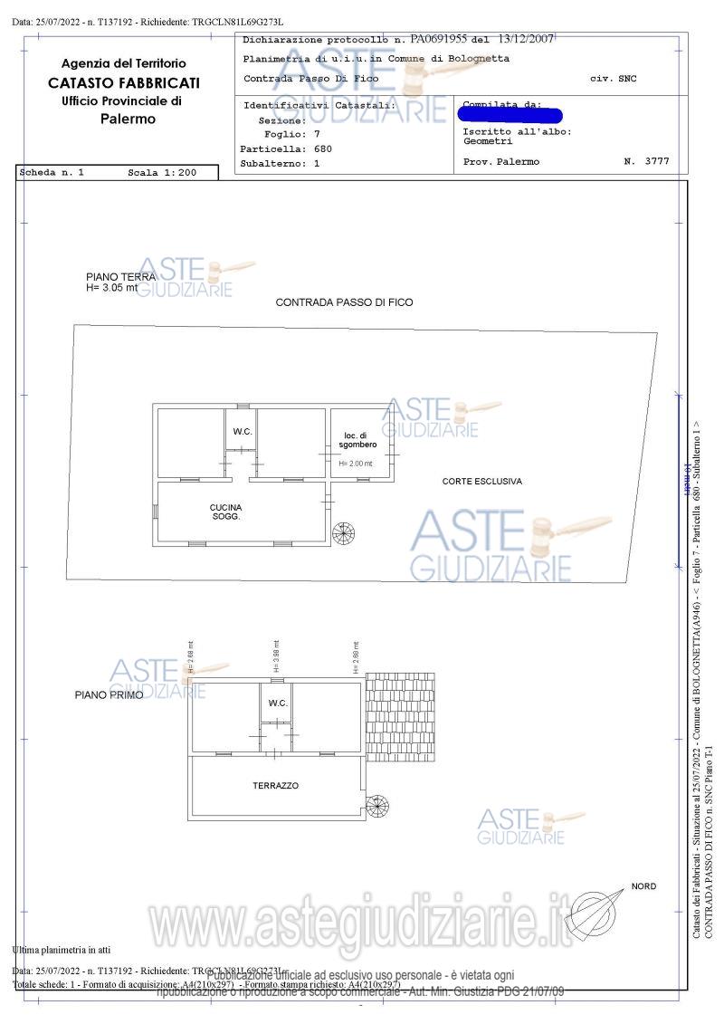 Vendita all'asta Senza incanto - LOTTO 2: fondo rustico in Bolognetta (PA), c/da Passo di Fico snc, su cui insiste un fabbricato a 2 elevazioni f.t. composto al p.T. da 1 locale sgombero adibito a cucina, 2 camere, servizio igienico, disimpegno, locale adibito a cucina-soggiorno, al piano 1° cui si accede a mezzo scala esterna da 2 camere, servizio igienico, disimpegno e terrazza, nella corte esclusiva di 480 mq insistono alcune tettoie, mentre nel terreno circostante corrispondente alla p.lla 409, insiste una tettoia in amianto di circa 20 mq. Prezzo base € 59.784,75 (offerta minima € 44.838,57). Data vendita 02/12/2025 ore 10:00. Professionista delegato alla vendita Avv. Davide Garretto - Email "avv.garretto.aste@virgilio.it". Rif. Tribunale di Palermo - Volontaria giurisdizione n. 1811/2024