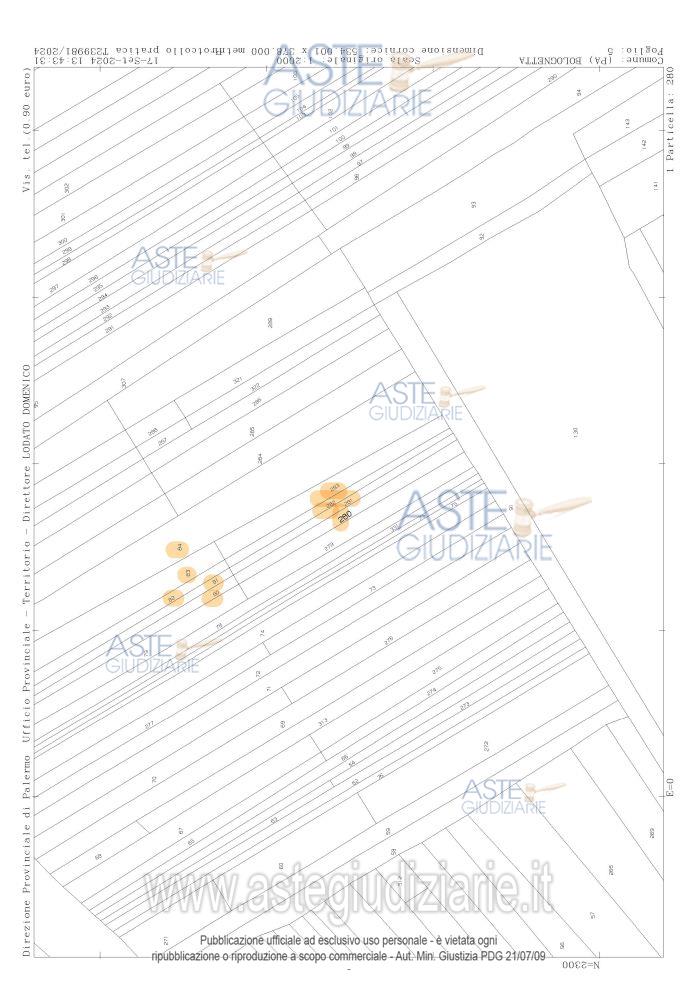 Vendita all'asta Senza incanto, con gara telematica sincrona mista - LOTTO UNICO: LOTTO C: piena e intera proprietà di terreni ubicati nel territorio del Comune di Bolognetta (PA), in contrada Torretta o Torretta Bosco raggiungibili mediante un’impervia strada di campagna accessibile dalla strada provinciale SP16 in prossimità della discarica Contrada Torretta del Comune di Bolognetta; censiti al foglio n. 3, particelle 29, 30, 31, 123 e 124 e al foglio n. 5, particelle 10, 13, 14, 15, 16, 80, 81, 82, 83, 84, 280, 281, 282 e 283. superficie catastale complessiva è di 37.799 mq. LIBERI. Prezzo base € 13.500,00 (offerta minima € 10.125,00). Data vendita 22/05/2026 ore 12:00. Professionista delegato alla vendita Avv. Laura Galasso - Email "info@dagape.it"; Cell. 3896777421; Tel. 091322911. Custode Giudiziario Avv. Laura Galasso - Email "info@dagape.it"; Cell. 3896777421; Tel. 091322911. Rif. Tribunale di Palermo - Esecuzione immobiliare post legge 80 n. 16/1998