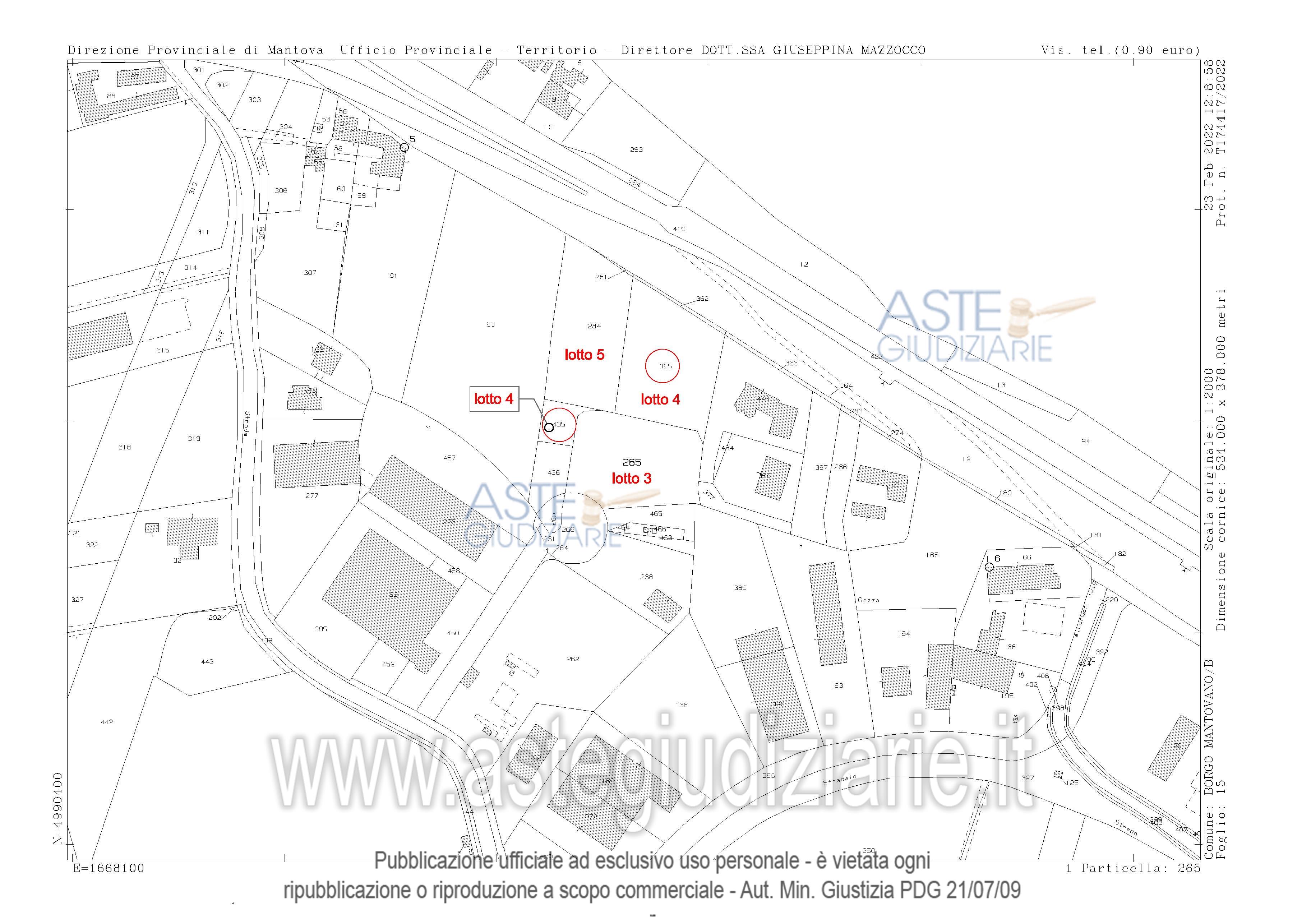 Vendita all'asta Senza incanto, con gara telematica sincrona mista - LOTTO 5: Piena proprietà di terreno edificabile. Prezzo base € 12.688,00 (offerta minima € 9.516,00). Data vendita 20/05/2026 ore 15:00. Giudice Mauro Pietro Bernardi. Professionista delegato alla vendita Not. Federico Tortora - Email "ftortora@notariato.it". Custode Giudiziario Sovemo Srl - Email "immobiliaremantova@sovemo.com"; Tel. 0376220694. Rif. Tribunale di Mantova - Esecuzione immobiliare post legge 80 n. 17/2022
