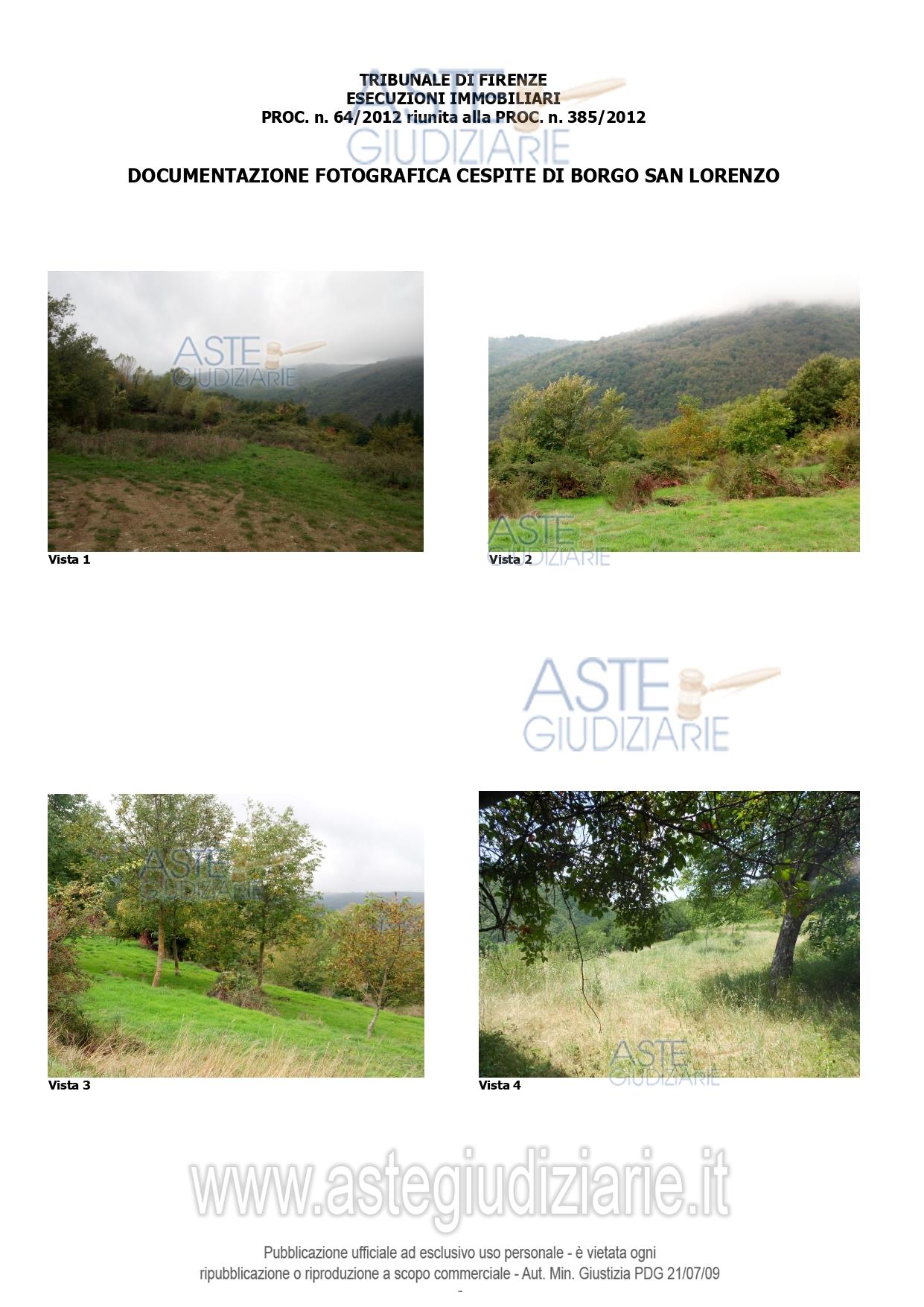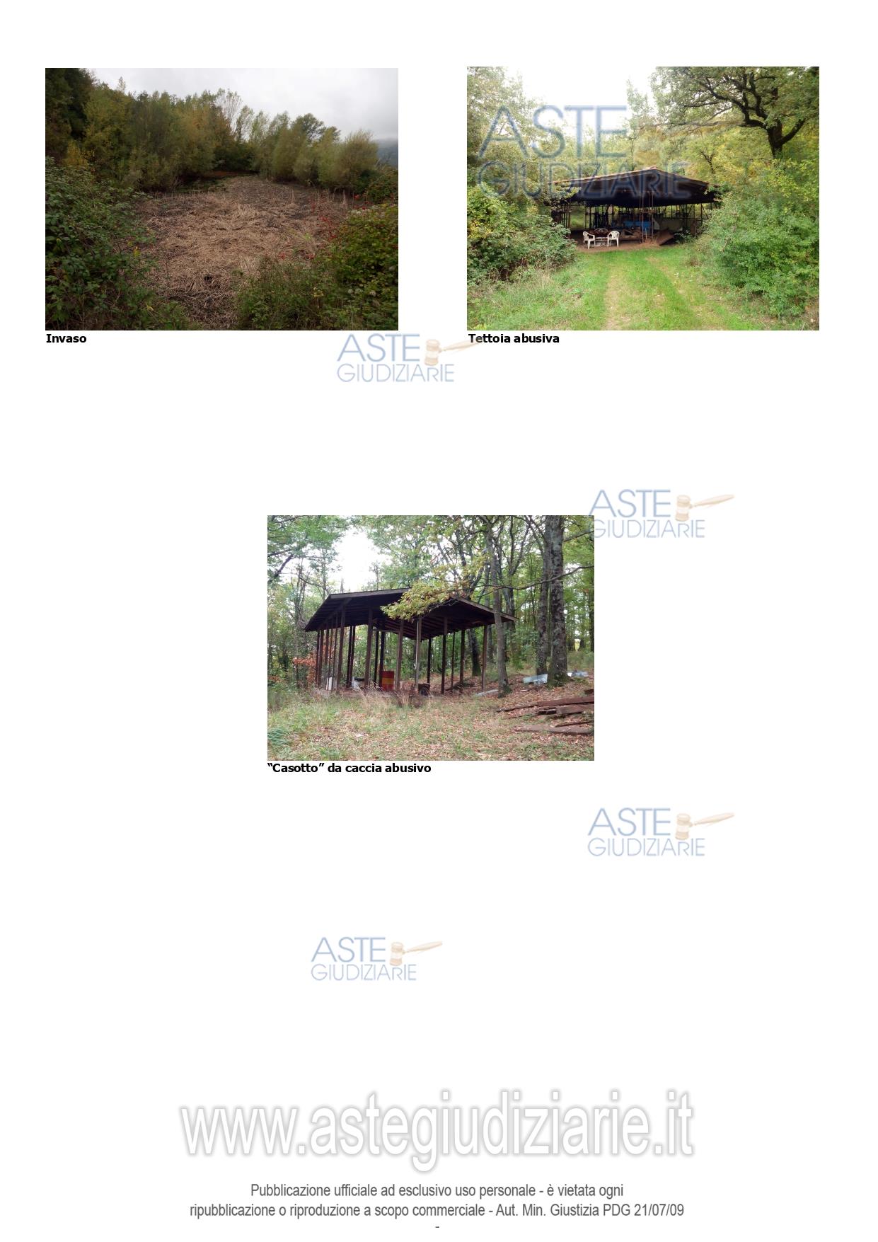 Vendita all'asta Senza incanto, con gara telematica sincrona - LOTTO 5: Piena proprietà di vasto ed eterogeneo appezzamento di terreno agricolo ad andamento collinare con sovrastanti fabbricati rurali e invaso artificiale per raccolta acqua meteorica. Il terreno per la maggior parte boschivo o a seminativo, non risulta in condizioni di produttività. I fabbricati sovrastanti consistono in una tettoia abusiva, in una "burraia", poco più di un relitto rurale nonchè in un casotto di legno da caccia quasi completamente demolito e abusivo oltre una sorta di cisterna interrata. Prezzo base € 128.520,00 (offerta minima € 96.390,00). Data vendita 27/05/2026 ore 16:00. Professionista delegato alla vendita Avv. Laura Marini - Email "avvmarini.laura@gmail.com"; Tel. 055473590. Custode Giudiziario Istituto Vendite Giudiziarie Di Firenze - Email "prenota.fi@isveg.it"; Tel. 0552340830. Rif. Tribunale di Firenze - Esecuzione immobiliare post legge 80 n. 52/2011