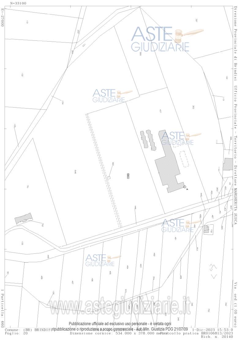 Vendita all'asta Senza incanto, con gara telematica asincrona - LOTTO UNICO: terreno agricolo a BRINDISI Località Brancasi, della superficie commerciale di 14.635,00 mq per la quota di 1/1 di piena proprietà. Il terreno agricolo è ubicato in agro di Brindisi alla contrada Brancasi, si raggiunge da Brindisi percorrendo la S.S. 16 Adriatica in dir Nord per San Vito dei Normanni, dopo circa 8 km superando l’Hotel Minerva si svolta a destra e si percorre la strada denominata Pilella, a 500 metri dall’incrocio si giunge sul fondo in esame che risulta essere prospiciente su tale via. Prezzo base € 37.191,75 (offerta minima € 27.893,81). Data inizio operazioni di vendita: 18/05/2026 ore 10:50. Professionista delegato alla vendita Avv. Gianluca Sardella - Email "segreteria@studiolegalesardella.it"; Cell. 3925651365; Tel. 0804413125. Custode Giudiziario Avv. Gianluca Sardella - Email "segreteria@studiolegalesardella.it"; Cell. 3925651365; Tel. 0804413125. Rif. Tribunale di Brindisi - Esecuzione immobiliare post legge 80 n. 121/2023