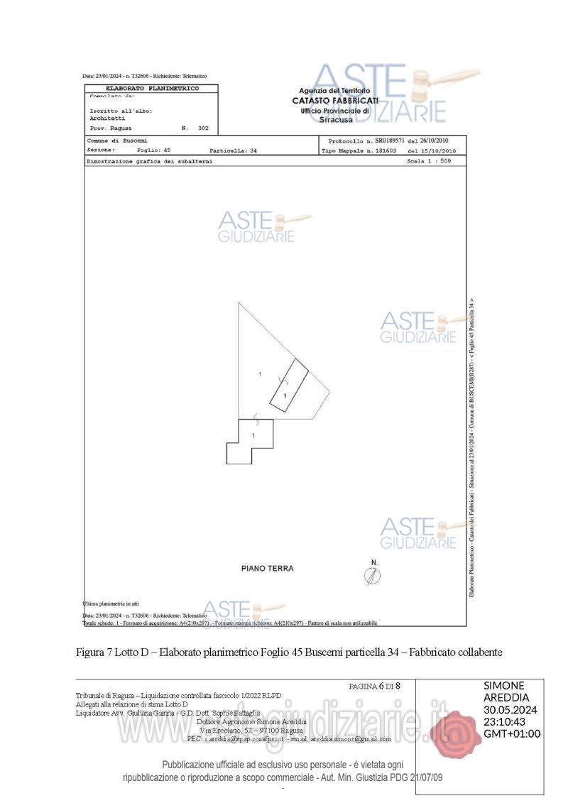 Vendita all'asta Senza incanto, con gara telematica asincrona - LOTTO 4: LOTTO 4 (D)-IN COMUNE DI BUSCEMI (SR) C.da Chiappa-Diritto di proprietà per la quota pari all’intero su terreno della superficie catastale di mq.134.571. Prezzo base € 68.090,62 (offerta minima € 68.090,62). Data inizio operazioni di vendita: 09/04/2026 ore 12:00. Giudice Dott. Sophie Battaglia. Rif. Tribunale di Ragusa - Liquidazione controllata(cci) n. 1/2022