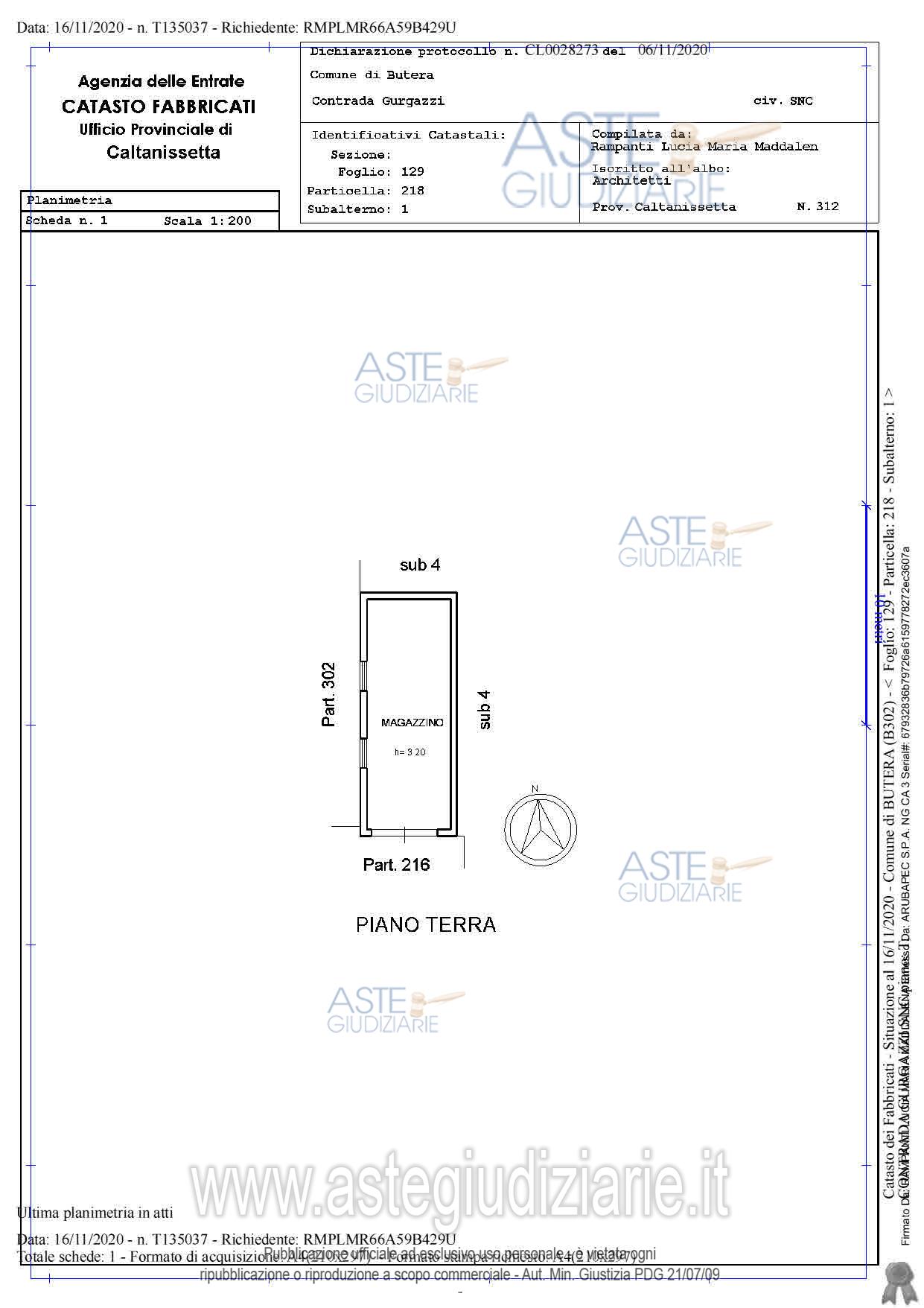 Vendita all'asta Senza incanto, con gara telematica sincrona mista - LOTTO UNICO: “Piena proprietà di azienda agricola sita in agro di Butera, c.da Gurgazzi, costituita da appezzamenti di terreno estesi Ha 24.58.36, coltivati a vigneto a tettoia, frutteto, uliveto e seminativo, in catasto terreni al foglio 129, plle 33, 55, 83,110,111, 114, 183, 216, 302, 304 e al foglio 77, p.lle 147 e 245, con annessi fabbricati e manufatti funzionali all’attività agricola in catasto urbano al foglio 129, p.lle 218 sub 1 e 4, 301, 281, 306, 307, 308, 11". Prezzo base € 294.868,16 (offerta minima € 221.151,12). Data vendita 14/04/2026 ore 17:00. Professionista delegato alla vendita Avv. Fernanda Siciliano - Email "fesiciliano@hotmail.com"; Cell. 3208983079; Tel. 3208983079. Custode Giudiziario Avv. Fernanda Siciliano - Email "fesiciliano@hotmail.com"; Cell. 3208983079; Tel. 3208983079. Rif. Tribunale di Gela - Esecuzione immobiliare post legge 80 n. 68/2018