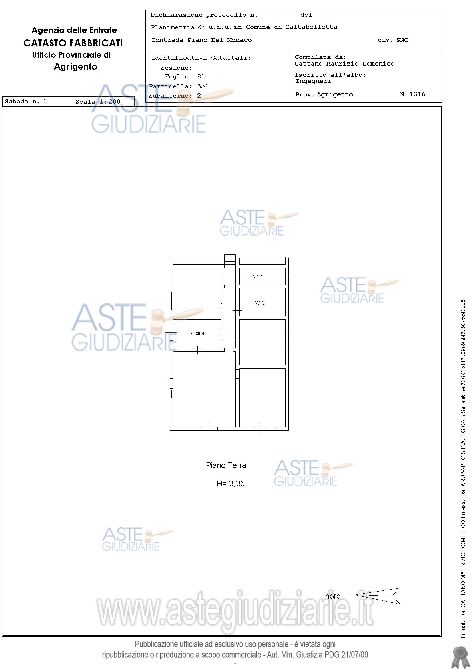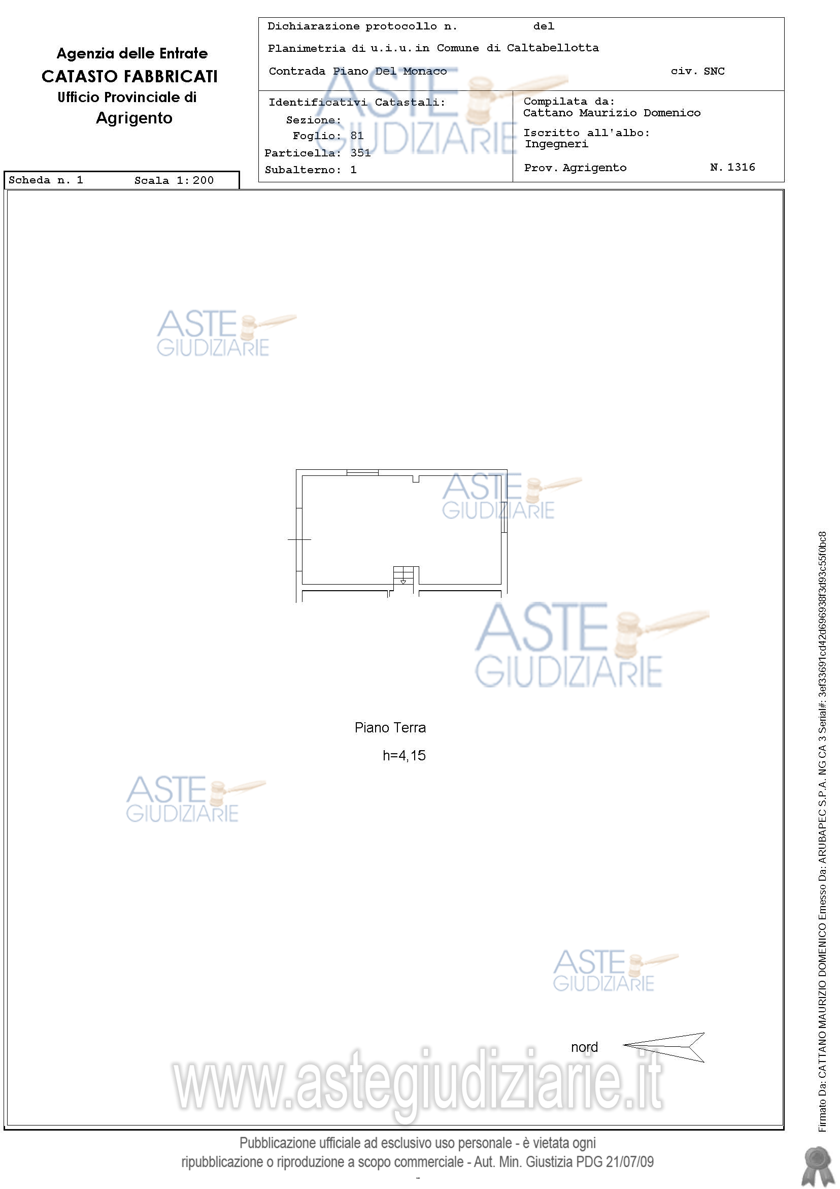 Vendita all'asta Senza incanto - LOTTO 6: Terreno agricolo esteso Ha 4.20.96, con annesso fabbricato rurale, in territorio di Caltabellotta C/da Piano Monaco, coltivato in parte ad aranceto, in parte a pescheto e ad uliveto. Prezzo base € 108.000,00 (offerta minima € 81.000,00). Data vendita 22/01/2026 ore 16:30. Professionista delegato alla vendita Dott. Calogero Craco' - Email "studiocraco@gmail.com". Custode Giudiziario Dott. Calogero Craco' - Email "studiocraco@gmail.com". Rif. Tribunale di Sciacca - Esecuzione immobiliare post legge 80 n. 27/1985