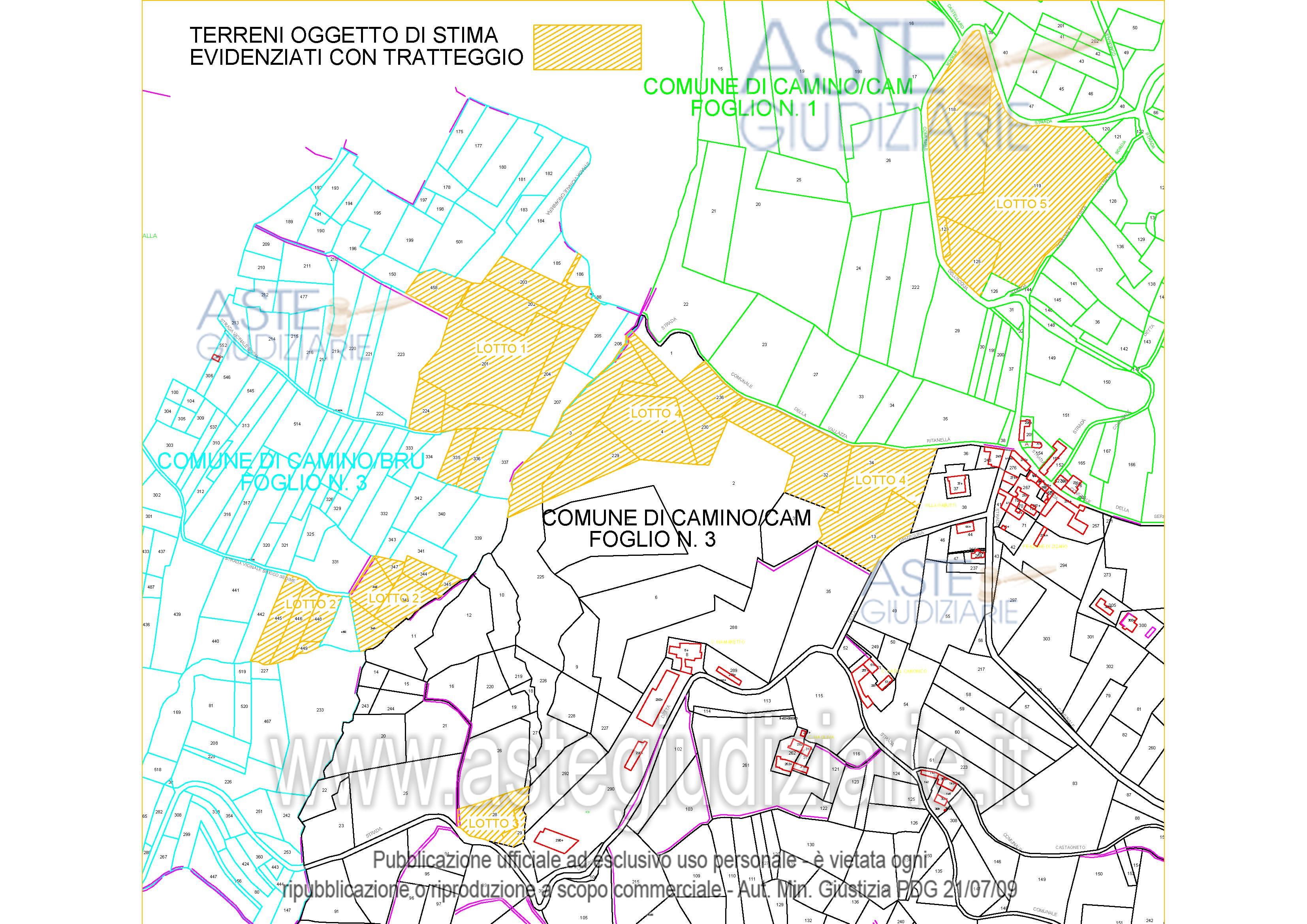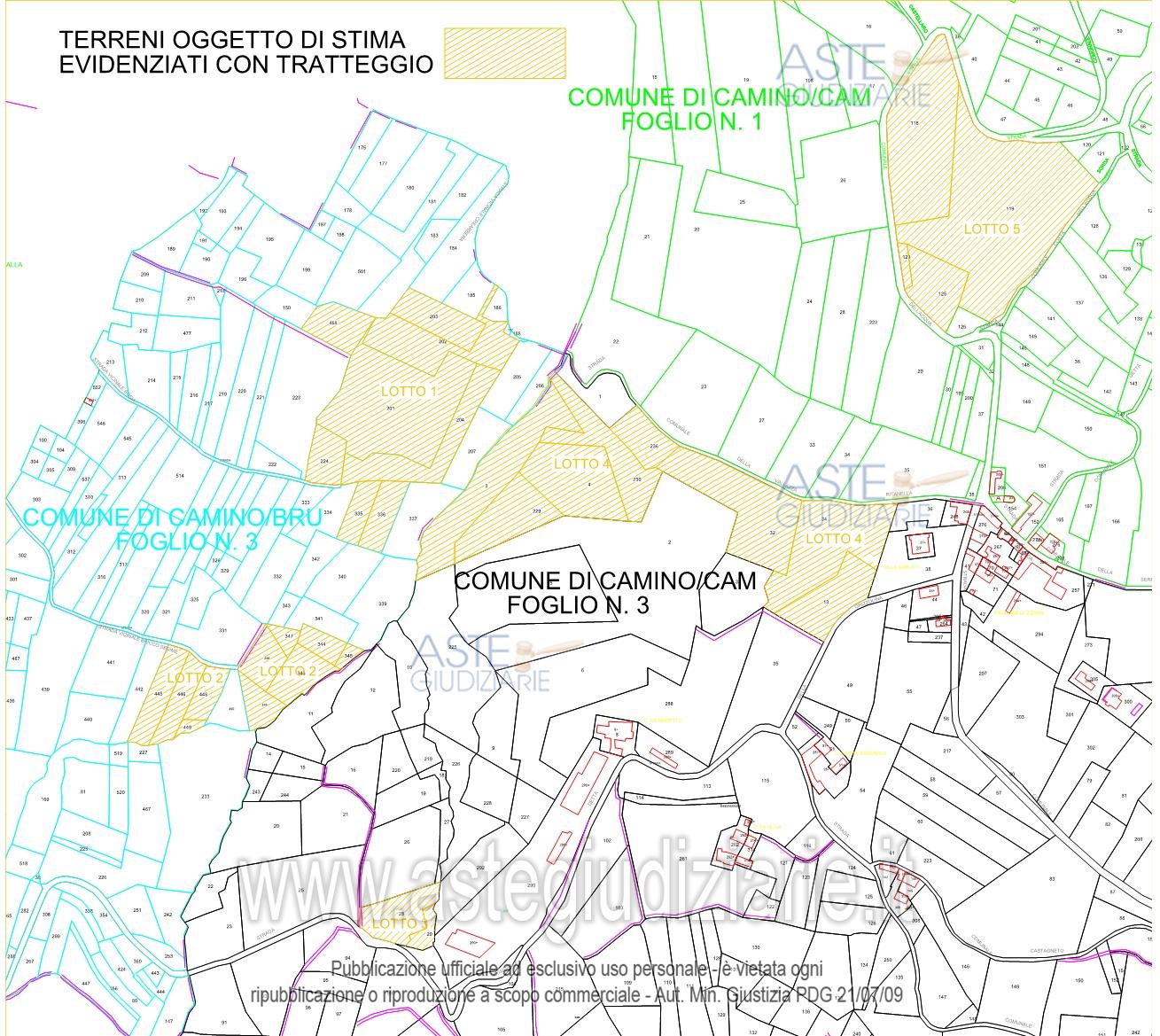 Vendita all'asta Senza incanto, con gara telematica asincrona - LOTTO UNICO: Il bene è costituito da terreni incolti e boschivi suddivisi in 5 blocchi siti nel comune di Camino (AL)1° Blocco: l’appezzamento è infestato da boscaglia e arbusti. 2° Blocco: terreni abbandonati e divenuti bosco, da valutarsi come bosco ceduo.3° Blocco: l’appezzamento è scosceso, incolto ed è di fatto un bosco. 4° Blocco: l’appezzamento è di pregio tutto facilmente lavorabile con i trattori. 5° Blocco: l’appezzamento è abbastanza scosceso ma comunque lavorabile con normale attrezzatura meccanica. Prezzo base € 14.063,00 (offerta minima € 10.547,00). Data inizio operazioni di vendita: 09/04/2026 ore 16:00. Giudice Annalisa Fanini. Professionista delegato alla vendita Avv. Elena Inaudi - Email "elena.inaudi@libero.it"; Cell. 0142452192. Custode Giudiziario Avv. Elena Inaudi - Email "elena.inaudi@libero.it"; Cell. 0142452192. Rif. Tribunale di Vercelli - Espropriazione immobiliare (cartabia) n. 167/2024