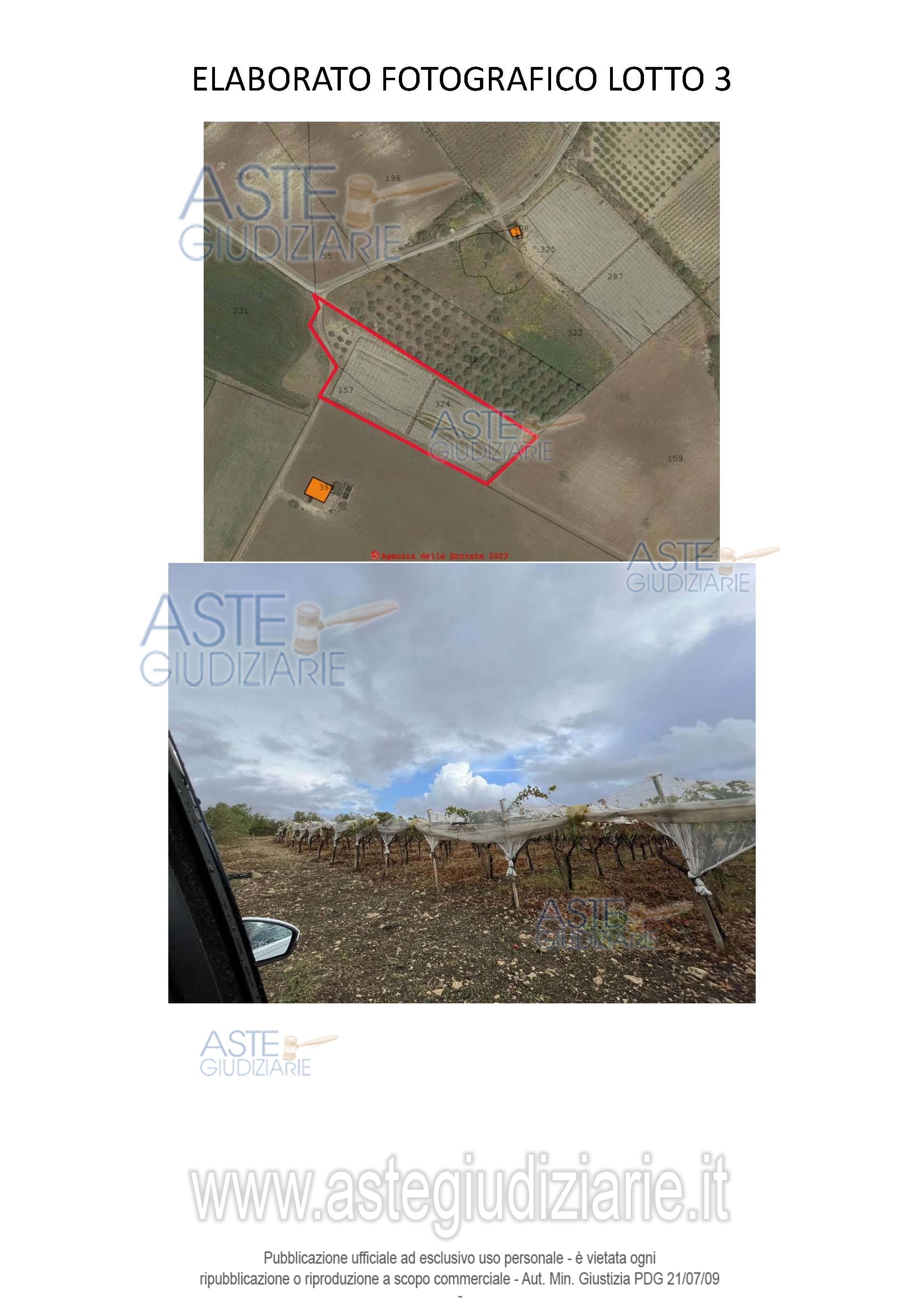 Vendita all'asta Senza incanto, con gara telematica sincrona mista - LOTTO 3: CAMPOBELLO DI LICATA (AG) – C.da Bifara – Immobile composto da due spezzoni di terreno contigui di forma regolare pressoche` rettangolare (coltivazione in atto piantumati con vigna). Superficie complessiva agraria are 67 ca 130 (2,90 tumuli circa, un tumulo all’interno del Comune di Campobello di Licata corrisponde a 2356 mq). Superficie complessiva in mq 6.830,00 circa. Prezzo base € 6.525,00 (offerta minima € 4.894,00). Data vendita 31/03/2026 ore 17:00. Giudice Vitalba Pipitone. Professionista delegato alla vendita Avv. Alessandra Balistreri - Email "ale.balistreri@gmail.com"; Cell. 3888708298. Custode Giudiziario Alessandra Balistreri. Rif. Tribunale di Agrigento - Esecuzione immobiliare post legge 80 n. 126/2022