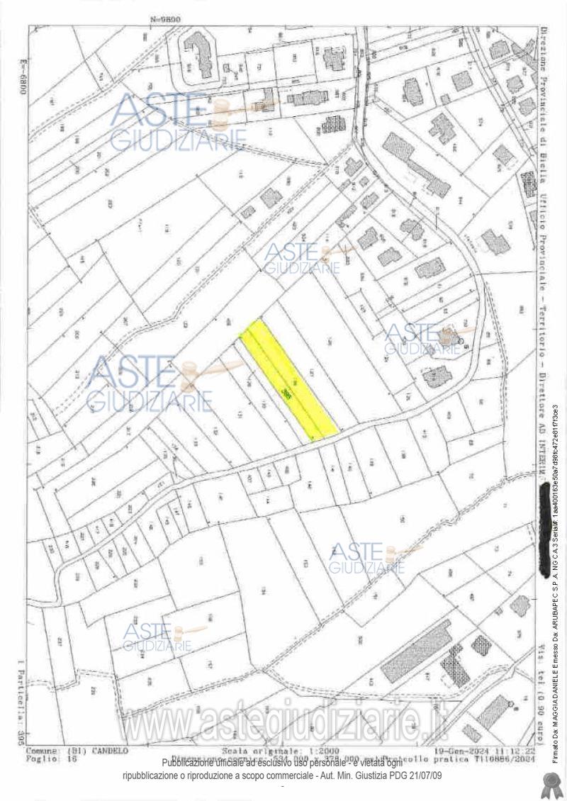 Vendita all'asta Senza incanto, con gara telematica asincrona - LOTTO 6: Due terreni di forma pressoché trapezoidale siti in Località Fieri. Prezzo base € 3.195,00 (offerta minima € 2.396,00). Data inizio operazioni di vendita: 12/05/2026 ore 15:00. Giudice Dott. Emanuele Migliore. Professionista delegato alla vendita Dott. Simone Chieppa - Email "simone.chieppa@promeria.it"; Tel. 0150156600. Rif. Tribunale di Biella - Contenzioso n. 1174/2024