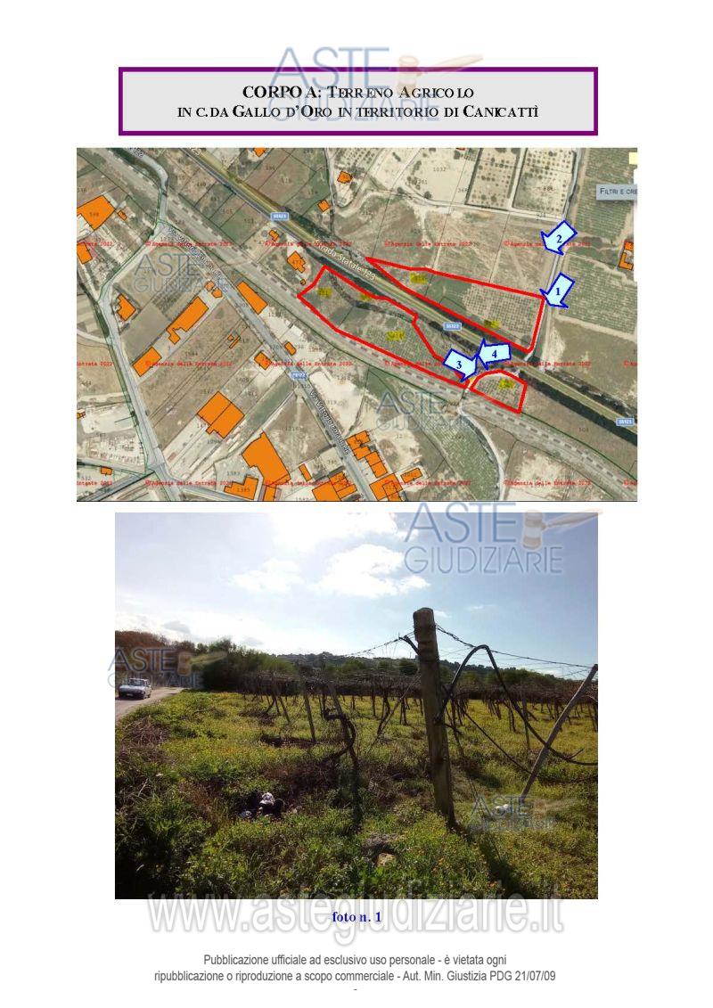 Vendita all'asta Senza incanto, con gara telematica sincrona mista - LOTTO 4: Piena proprietà per la quota di 1000/1000 di terreno agricolo ubicato in Canicattì (AG) in c.da Gallo d'Oro (rectius Coda di Volpe) avente superficie complessiva di circa mq 13.090. Identificato in catasto terreni al Foglio 33, part.lle 313, 921, 922, 121, 495, 914, 915, 916 e 264. Prezzo base € 24.948,56 (offerta minima € 18.711,42). Data vendita 11/02/2026 ore 10:30. Professionista delegato alla vendita Avv. Raimondo Curto Pelle - Email "avv.raimondocurtopelle@gmail.com"; Cell. 3293134048; Tel. 0922831851. Custode Giudiziario Avv. Raimondo Curto Pelle - Email "avv.raimondocurtopelle@gmail.com"; Cell. 3293134048; Tel. 0922831851. Rif. Tribunale di Agrigento - Esecuzione immobiliare post legge 80 n. 96/2020
