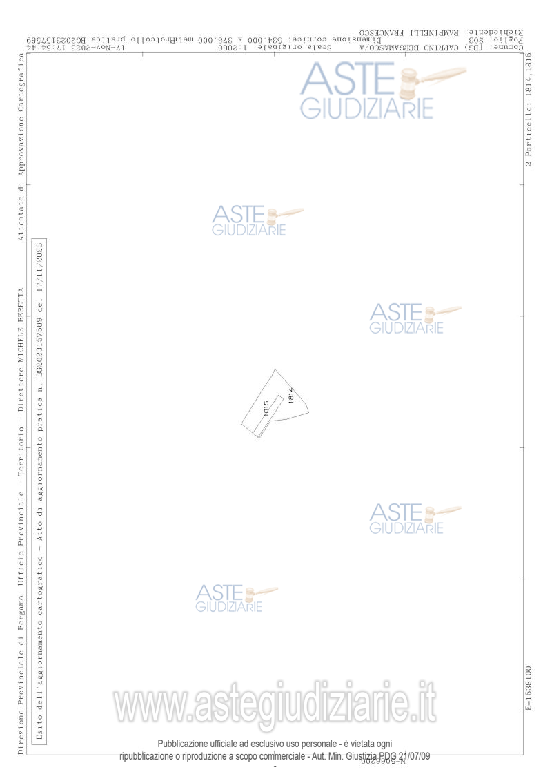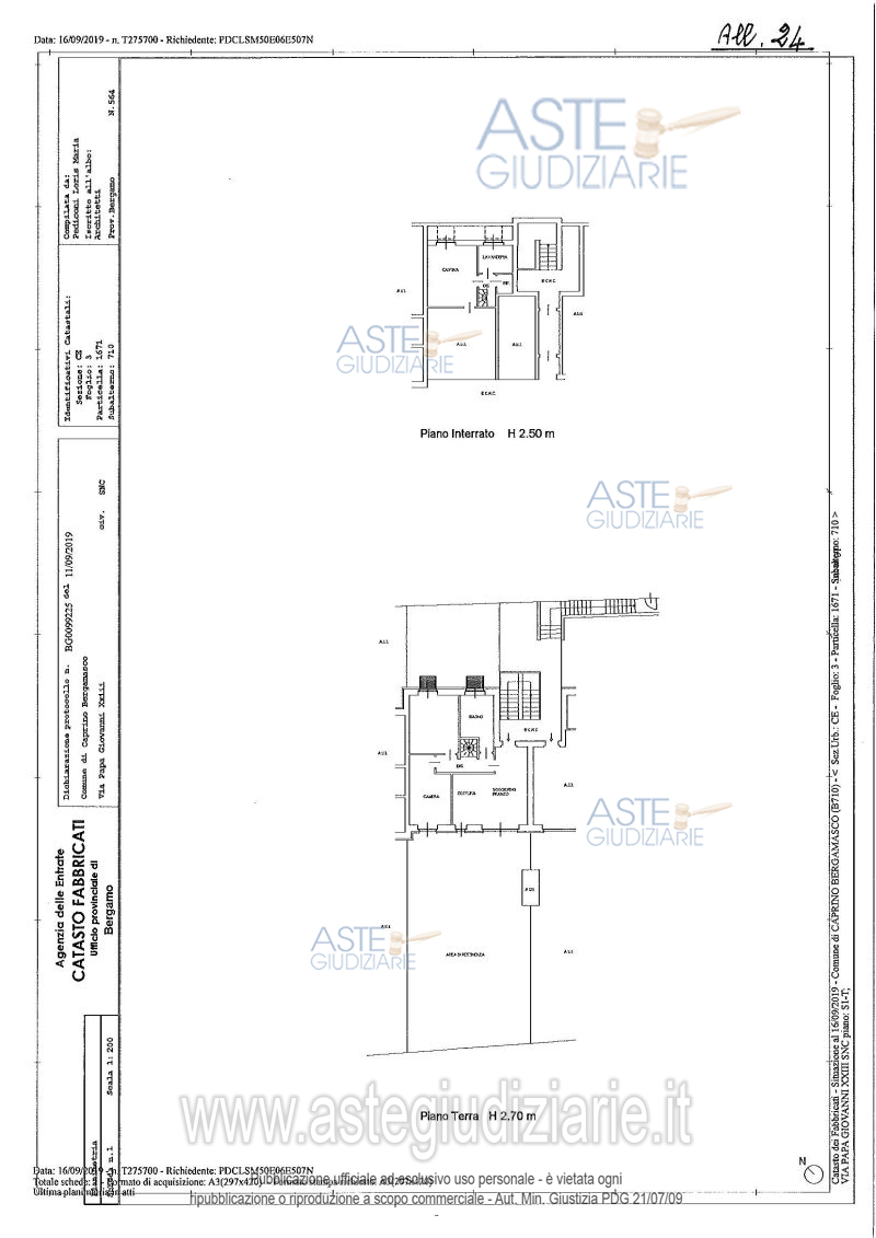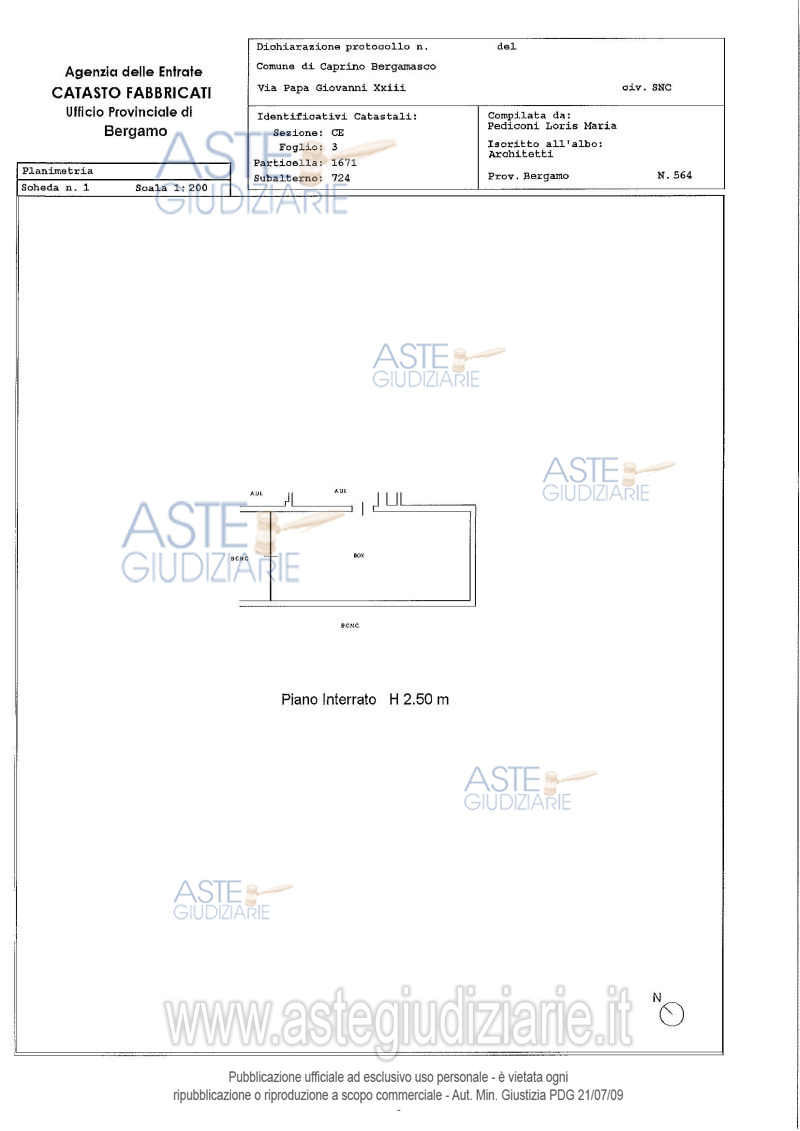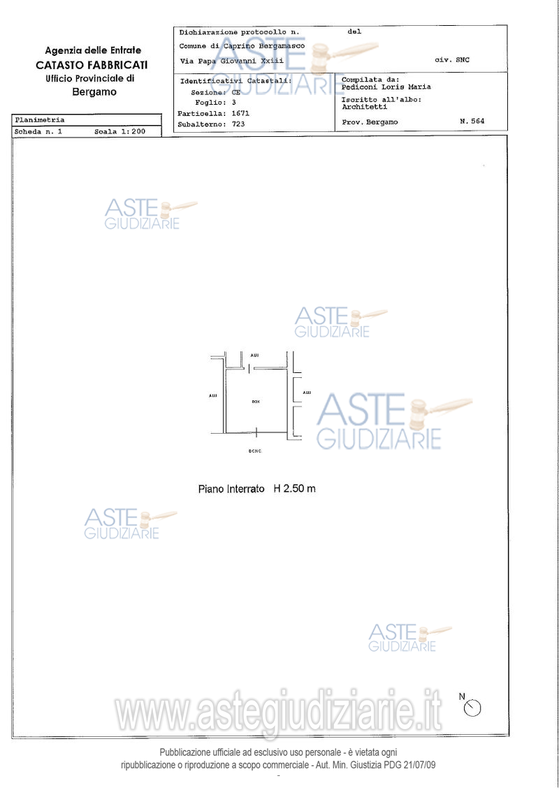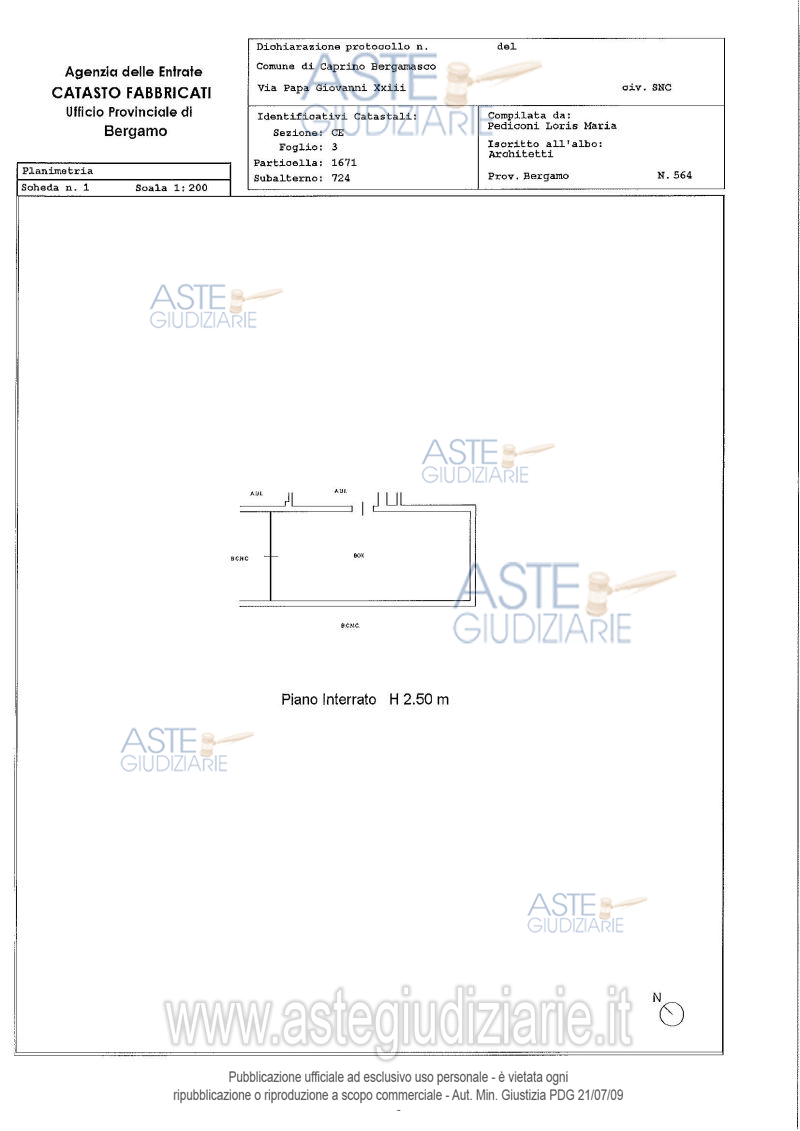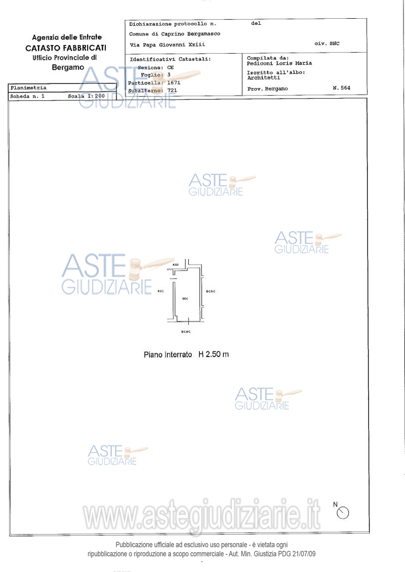 Vendita all'asta Senza incanto, con gara telematica asincrona - LOTTO 7: Nel Comune di Caprino Bergamasco (BG), Via Papa Giovanni XXIII, piena ed esclusiva proprietà di un appartamento ad uso civile abitazione al piano primo e secondo (sottotetto), di un'autorimessa al piano interrato e di un posto auto al piano interrato, oltre alla quota di proprietà di 1/8 del corsello di accesso ai box (v. LOTTO 7). Prezzo base € 97.635,00 (offerta minima € 73.226,25). Data inizio operazioni di vendita: 22/01/2026 ore 15:30. Giudice Maria Magrì. Professionista delegato alla vendita Avv. Pietro Bianchi - Tel. 035231110. Custode Giudiziario Roberta Guarnieri - Email "immobiliare@ivgbergamo.it"; Tel. 0350763005. Rif. Tribunale di Bergamo - Esecuzione immobiliare post legge 80 n. 843/2018