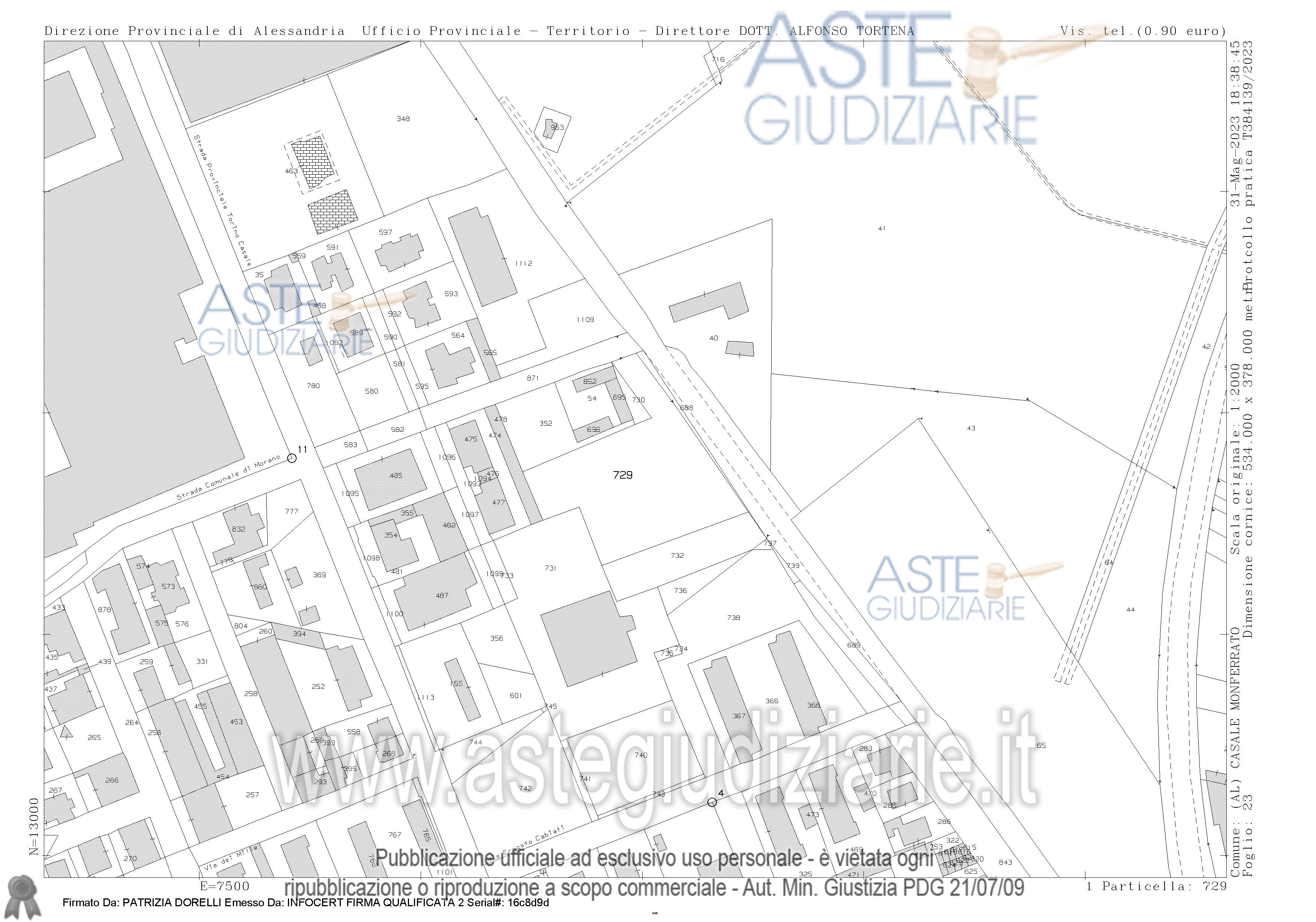 Vendita all'asta Senza incanto, con gara telematica asincrona - LOTTO UNICO: PIENA PROPRIETà DI TERRENO ubicato a Casale Monferrato (AL) - via Giuseppe Carrera, s.n.c., identificato al Catasto Terreni come Fg. 23, Part. 729, qualitàseminativo irriguo, cl.3, sup. 40,73 mq. RD € 50,48, RA € 31,55. Prezzo base € 29.383,00 (offerta minima € 22.037,00). Data inizio operazioni di vendita: 17/02/2026 ore 15:30. Giudice Annalisa Fanini. Professionista delegato alla vendita Avv. Andrea Zavanone - Email "zavanone@msn.com"; Tel. 014271979. Rif. Tribunale di Vercelli - Contenzioso civile n. 678/2024