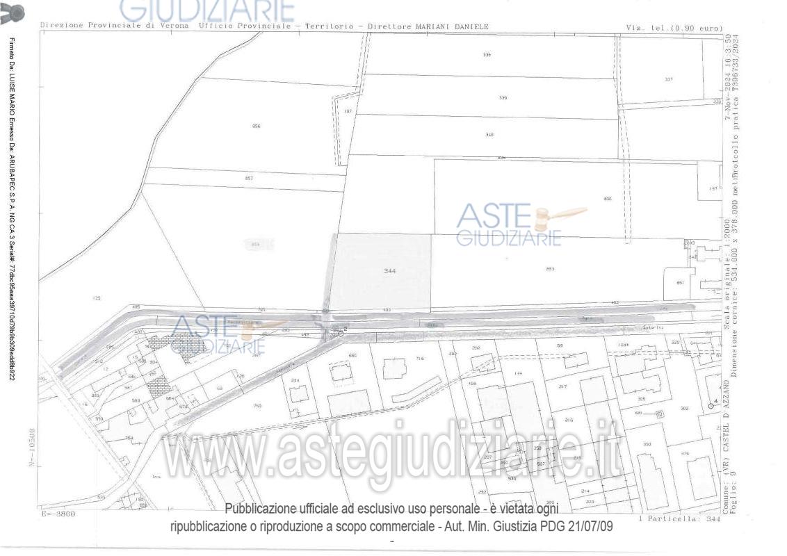 Vendita all'asta Senza incanto, con gara telematica sincrona mista - LOTTO 3: LOTTO 3 - In Comune di Castel D’Azzano (VR), in Via San Martino snc (ubicato a nord est dell’edificio sito al n. 22 di detta via) , piena proprietà di un appezzamento di terreno agricolo di mq. 4.611,00, attualmente incolto. Prezzo base € 21.600,00 (offerta minima € 16.200,00). Data vendita 12/03/2026 ore 14:00. Giudice Paola Salmaso. Professionista delegato alla vendita Not. Roberto Tordiglione - Email "notes@notariato.it"; Tel. 0458006661. Custode Giudiziario Avv. Piergiorgio Bonini - Email "p.bonini@studiolegalebonini.it"; Tel. 045595159. Rif. Tribunale di Verona - Esecuzione immobiliare post legge 80 n. 479/2018