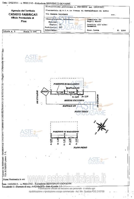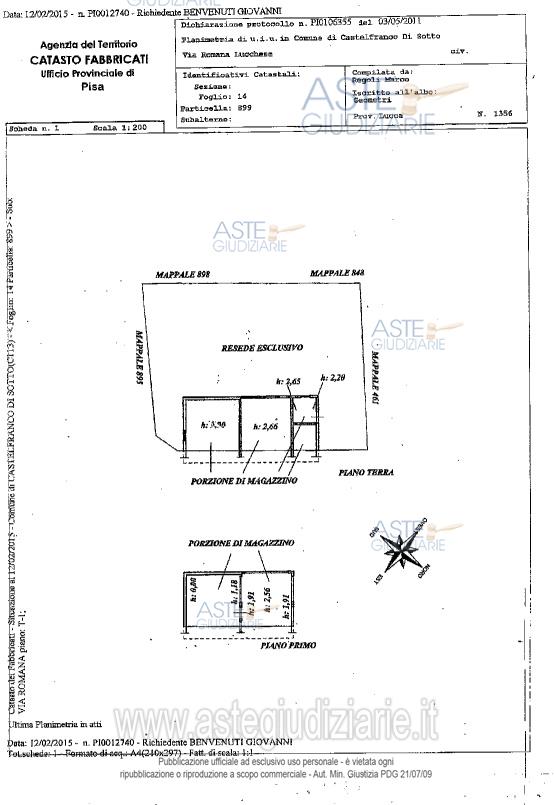 Vendita all'asta Senza incanto, con gara telematica asincrona - LOTTO 3: In Comune di Castelfranco di Sotto, frazione Chimenti, a sud della via Romana Lucchese, compendio immobiliare composto: piena proprietà dell’intero di appezzamento di terreno di forma rettangolare, piena proprietà dell’intero di locale ad uso deposito disposto su due piani fuori terra, piena proprietà dell’intero di altro fabbricato ad uso deposito sviluppato su due piani fuori terra , appezzamento di terreno di forma rettangolare di metri quadrati 160, quota indivisa di 2/27 di una striscia di terreno . Prezzo base € 35.437,50 (offerta minima € 26.578,00). Data inizio operazioni di vendita: 16/04/2026 ore 16:00. Giudice Dott. Zinna. Professionista delegato alla vendita Avv. Stefano Giusti. Custode Giudiziario Cosimo Erriquez - Email "prenotazionipisa@astagiudiziaria.com"; Tel. 050554790. Rif. Tribunale di Pisa - Contenzioso civile n. 2692/2018