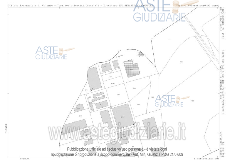 Vendita all'asta Senza incanto - LOTTO 72: Terreno sito in Catania, con accesso da via Montepalma, all’interno del quale (e precisamente sulla particella 226) insistono due fabbricati abusivi e non catastati (ricadenti in minor parte su particelle in proprietà di terzi); censito al N.C.T. al Foglio 19, particelle: - 216, qualità mandorleto, classe 2, sup. 00.24.55, r.d. € 17,75, r.a. € 7,61; - 226, qualità incolto prod, classe 2, sup. 00.28.65, r.d. € 0,44, r.a. € 0,15; -254, qualità chiusa, classe 3, sup. 00.21.60, r.d. € 11,16, r.a. € 6,69. Prezzo base € 45.960,00 (offerta minima € 34.470,00). Data vendita 27/11/2025 ore 10:30. Professionista delegato alla vendita Avv. Sergio Finocchiaro - Email "visite@aavg.it"; Tel. 0952163386. Rif. Tribunale di Catania - Contenzioso civile n. 15087/2020