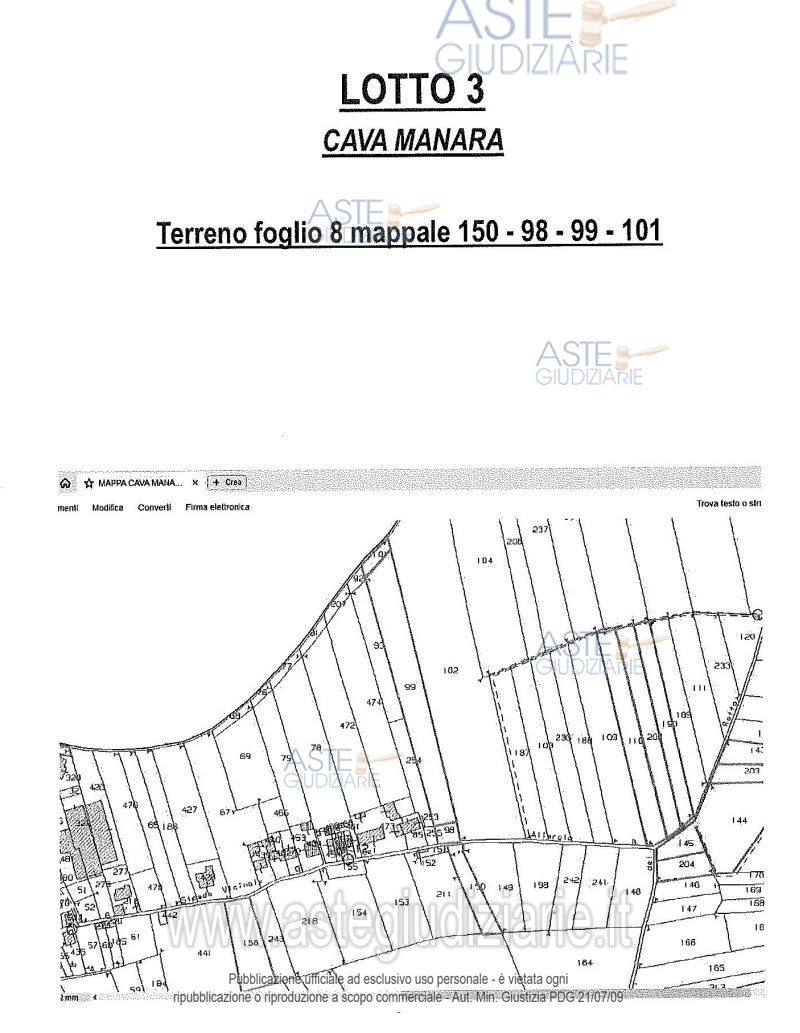 Vendita in attesa dell'emissione del nuovo bando d'asta. LOTTO 3: Terreni qualità seminativo mapp. 150AA - 150AB - 98 -99 -101 fg. 8. Ultimo prezzo base € 23.475,00 (offerta minima € 17.606,00). Giudice Francesca Paola Claris Appiani. Professionista delegato alla vendita Dott. Lucia Valentina Tomarchio - Email "valentina.tomarchio@studiogpl.it"; Tel. 038229131. Custode Giudiziario Istituto Vendite Giudiziarie Di Pavia - Email "prenotazione.visitaimmobile@ivgpavialodi.it"; Tel. 0382539013. Rif. Tribunale di Pavia - Espropriazione immobiliare (cartabia) n. 121/2024