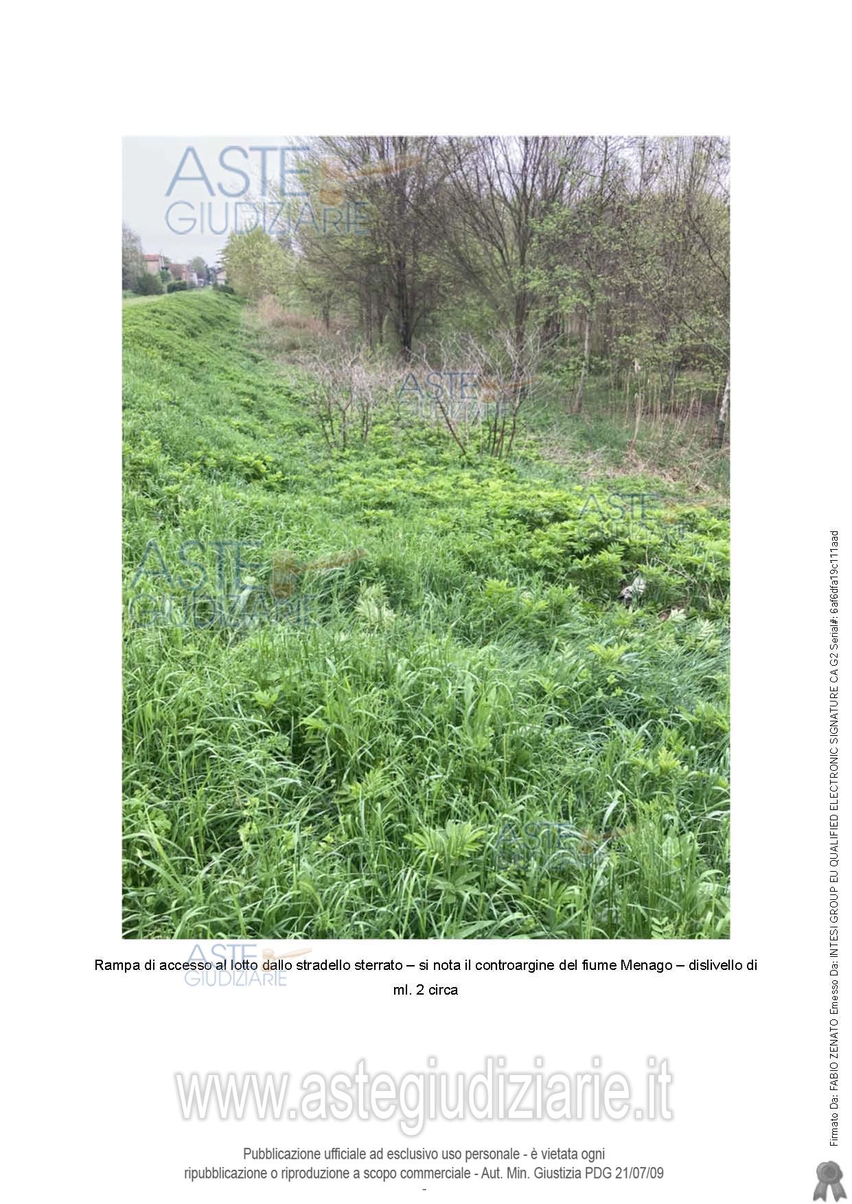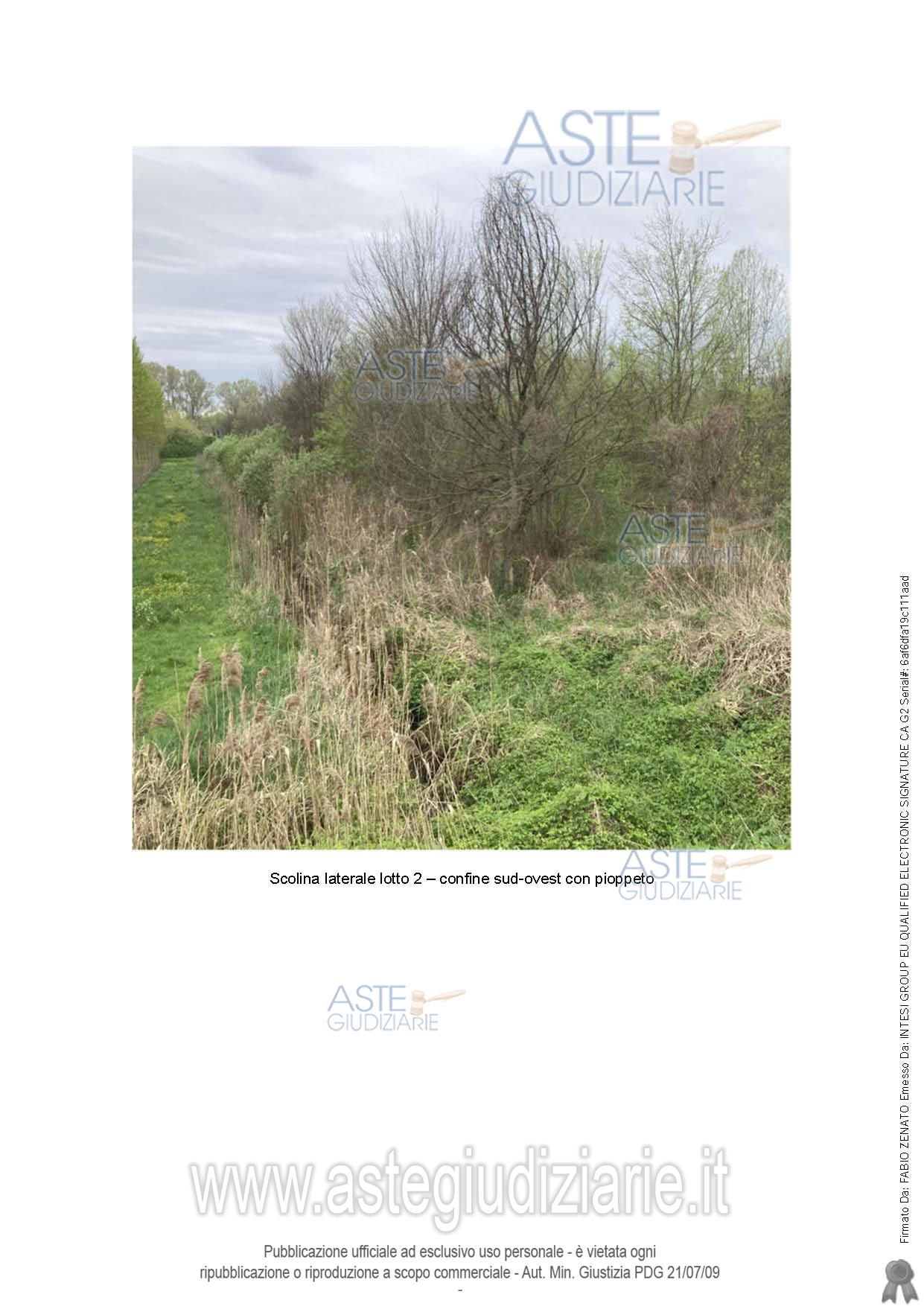 Vendita all'asta Senza incanto, con gara telematica sincrona mista - LOTTO 2: Piena proprietà di terreni agricoli lungo Strada Provinciale n 2 “Legnaghese”, in unico appezzamento di forma rettangolare compreso, sui lati nord-est e sud-ovest, tra 2 bracci del fiume Menago, sviluppa una lunghezza di circa 200 ml, perpendicolarmente ai corsi d’acqua, con accesso dalla Via San Zeno, in prossimità del civ 82 (sul lato opposto della strada), dopo avere attraversato il fiume grazie a un ponticello in cemento armato e avere percorso uno stradello che insiste su proprietà di terzi. Prezzo base € 41.200,00 (offerta minima € 30.900,00). Data vendita 17/02/2026 ore 14:00. Giudice Paola Salmaso. Professionista delegato alla vendita Avv. Paolo Cagliari - Email "paolo.cagliari@cfcavvocati.it"; Tel. 0458343204. Custode Giudiziario Avv. Paolo Cagliari - Email "paolo.cagliari@cfcavvocati.it"; Tel. 0458343204. Rif. Tribunale di Verona - Esecuzione immobiliare post legge 80 n. 7/2019