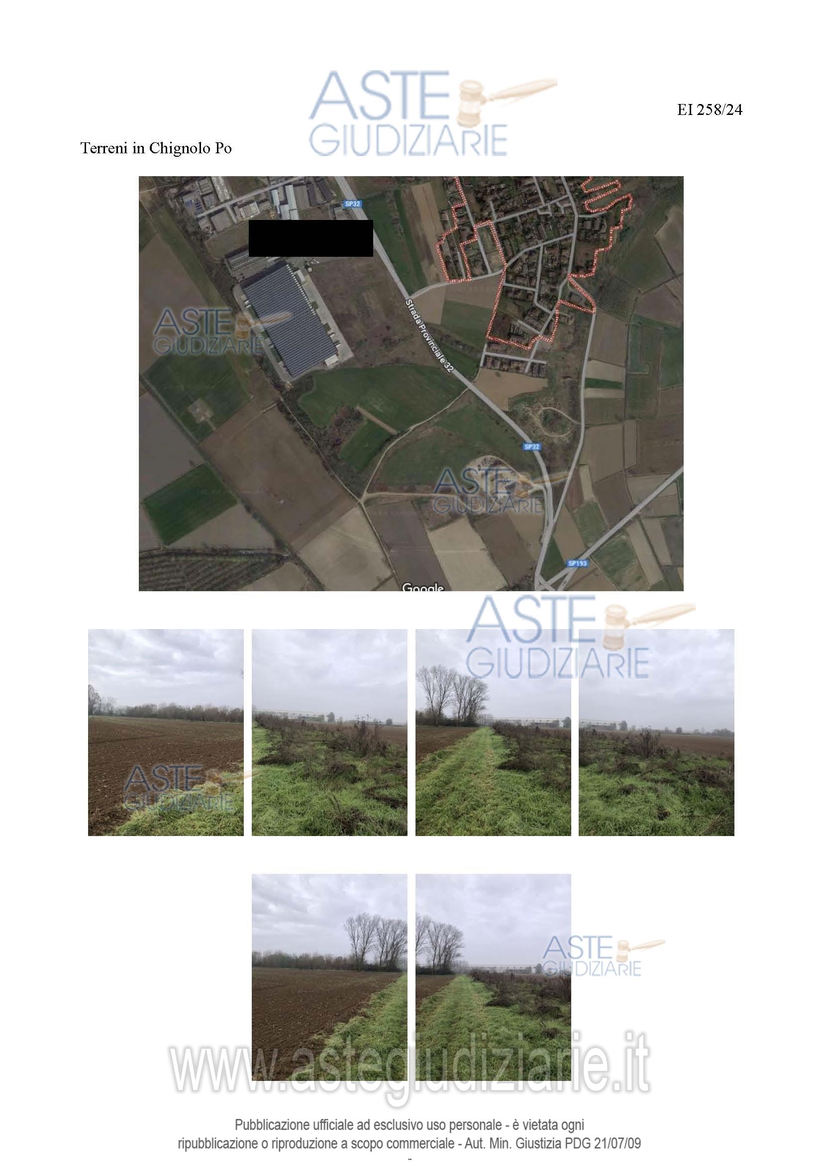 Vendita all'asta Senza incanto, con gara telematica asincrona - LOTTO 2: LOTTO B: trattasi di 20 terreni indivisibili posti in una zona periferica del Comune di Chignolo Po. I vari mappali sono inseriti in tre zone urbane. Prezzo base € 35.312,34 (offerta minima € 26.484,25). Data inizio operazioni di vendita: 28/04/2026 ore 10:00. Giudice Dott. Antonio Codega. Professionista delegato alla vendita Avv. Ferdinando Iofrida - Email "avv.iofrida@gmail.it". Custode Giudiziario Istituto Vendite Giudiziarie Pavia - Email "immobiliare@ivgpavialodi.it"; Tel. 0382539013. Rif. Tribunale di Pavia - Espropriazione immobiliare (cartabia) n. 258/2024