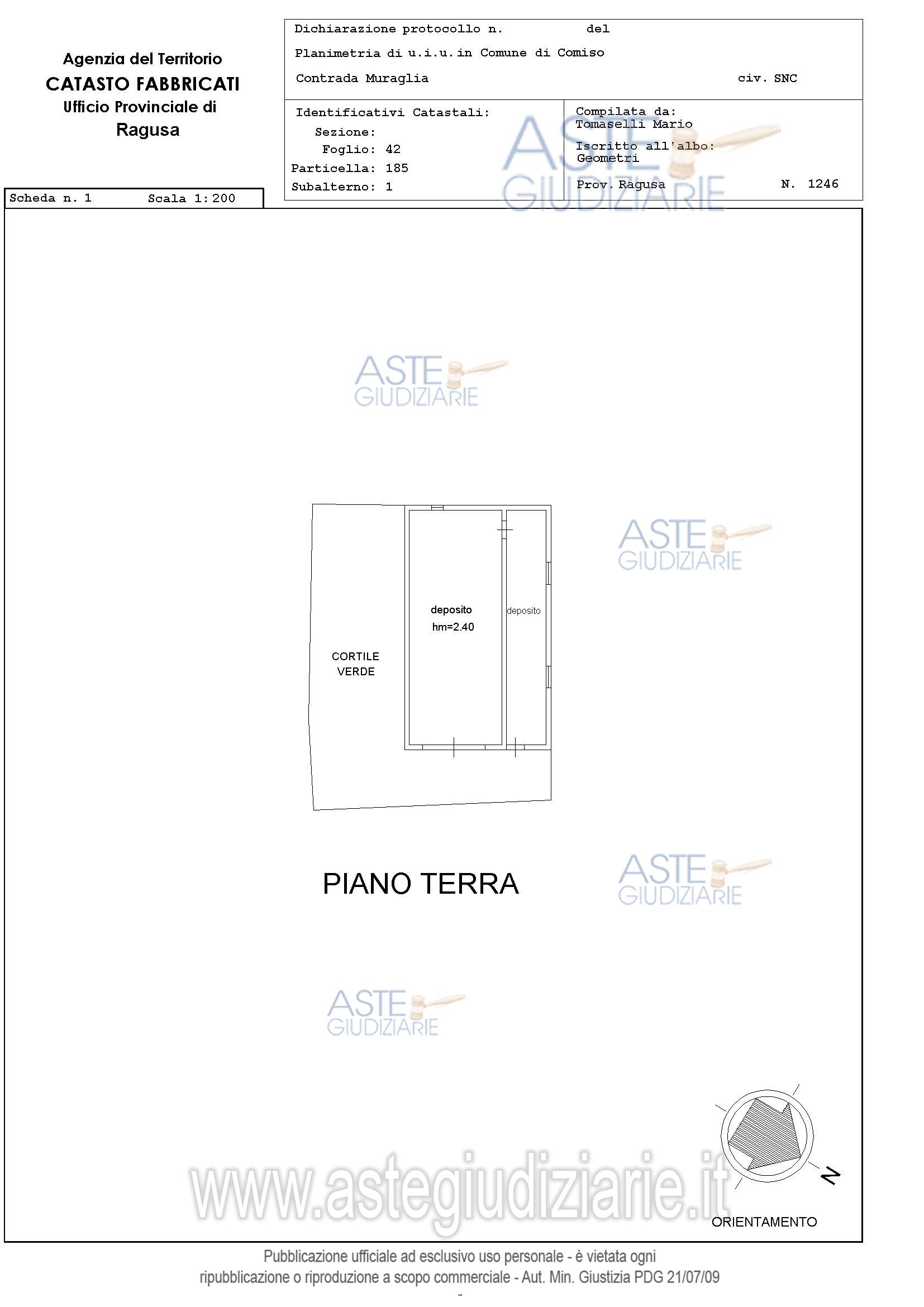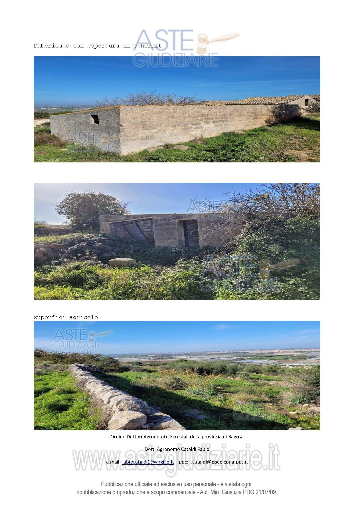 Vendita in attesa dell'emissione del nuovo bando d'asta. LOTTO 1: Piena Proprietà per l’intero di terreni e fabbricati siti in c.da Muraglie, agro di Comiso. I terreni sono identificati al foglio n. 42 p.lle n. 5, 85, 4, 86, 187, 6 aventi una estensione complessi. Ultimo prezzo base € 217.419,00 (offerta minima € 163.064,25). Giudice Carlo Di Cataldo. Professionista delegato alla vendita Avv. Ignazia Arezzo - Email "ignaziaarezzo@gmail.com". Custode Giudiziario Avv. Ignazia Arezzo - Email "ignaziaarezzo@gmail.com"; Tel. 0932247478. Rif. Tribunale di Ragusa - Esecuzione immobiliare post legge 80 n. 124/2022