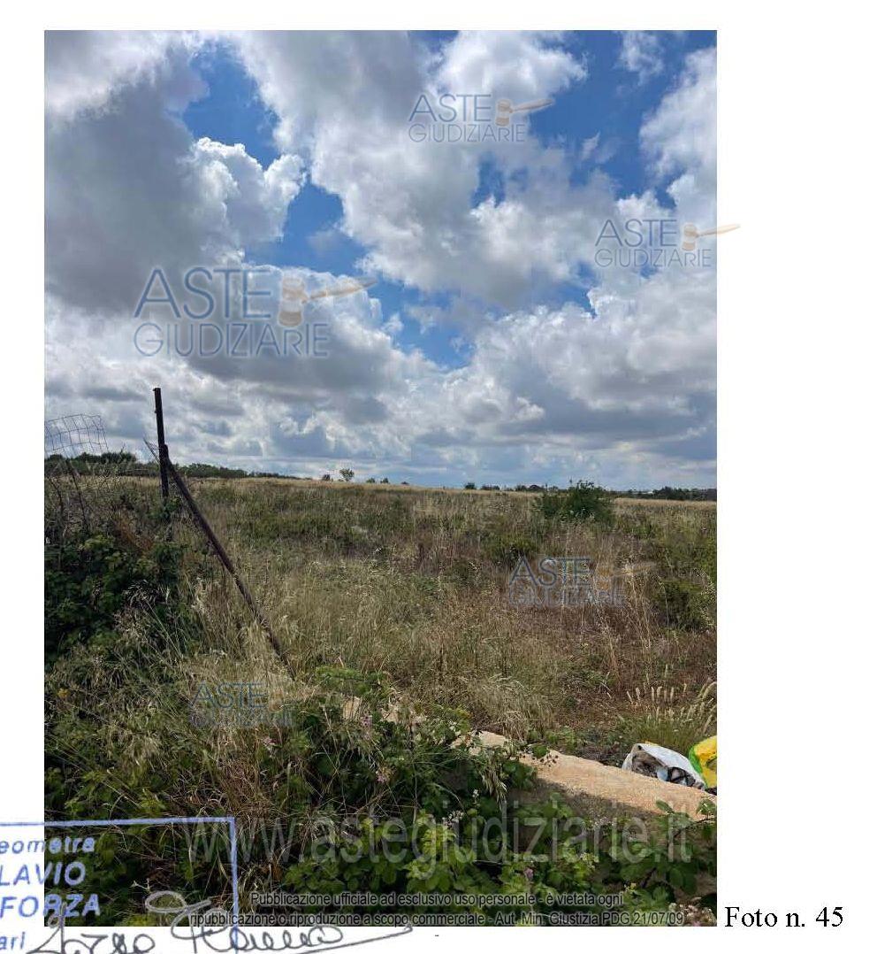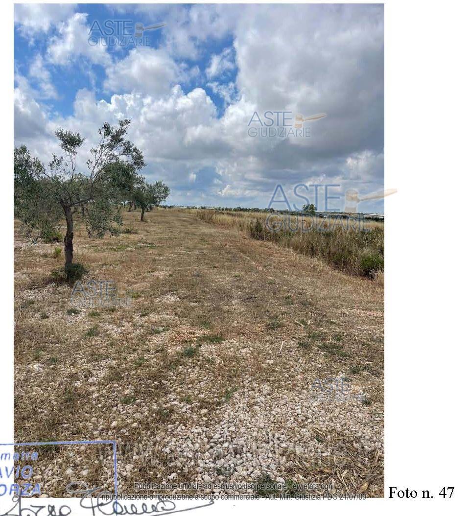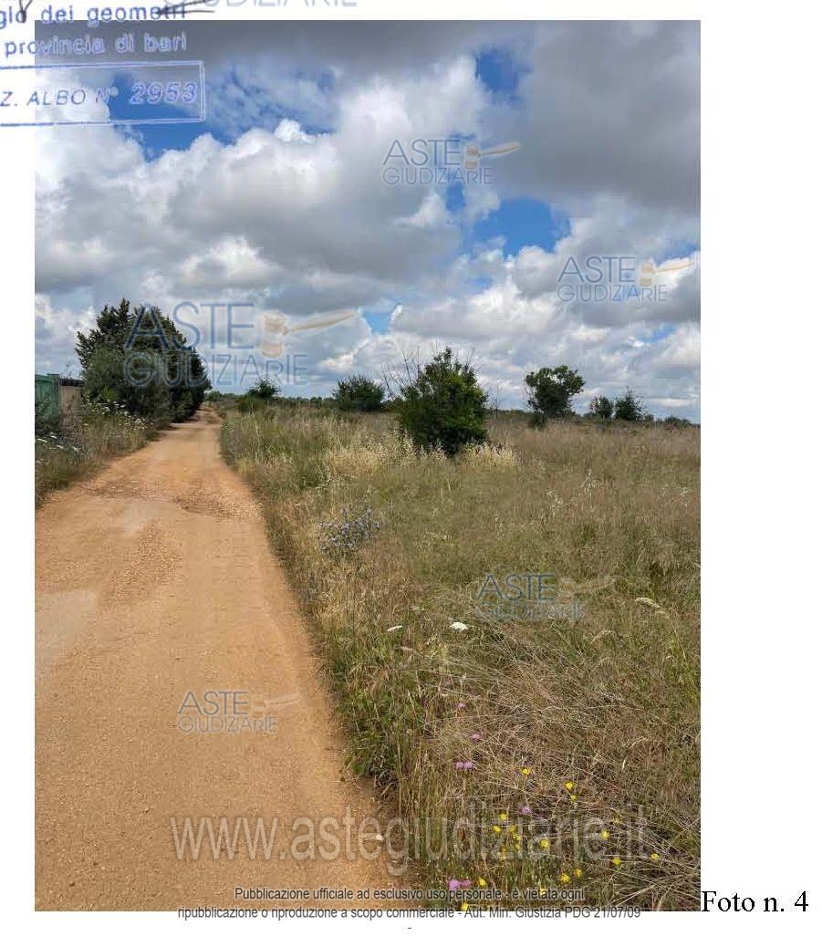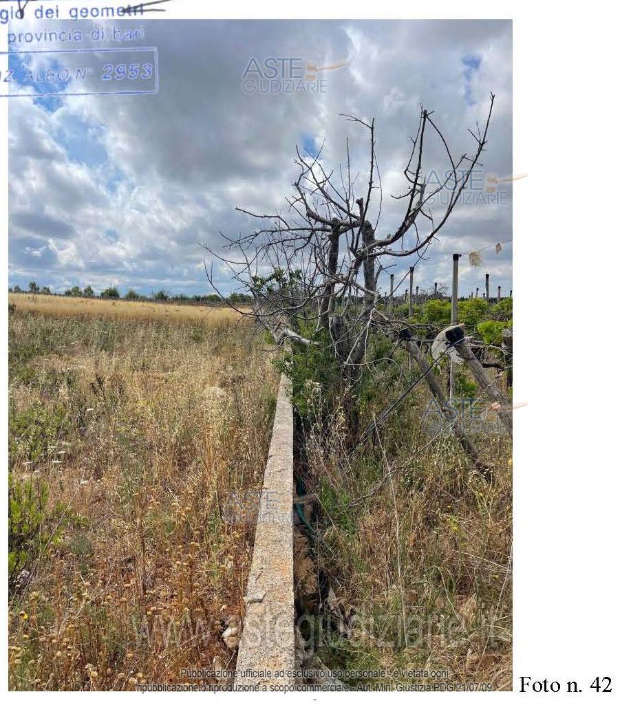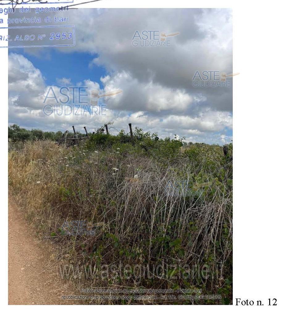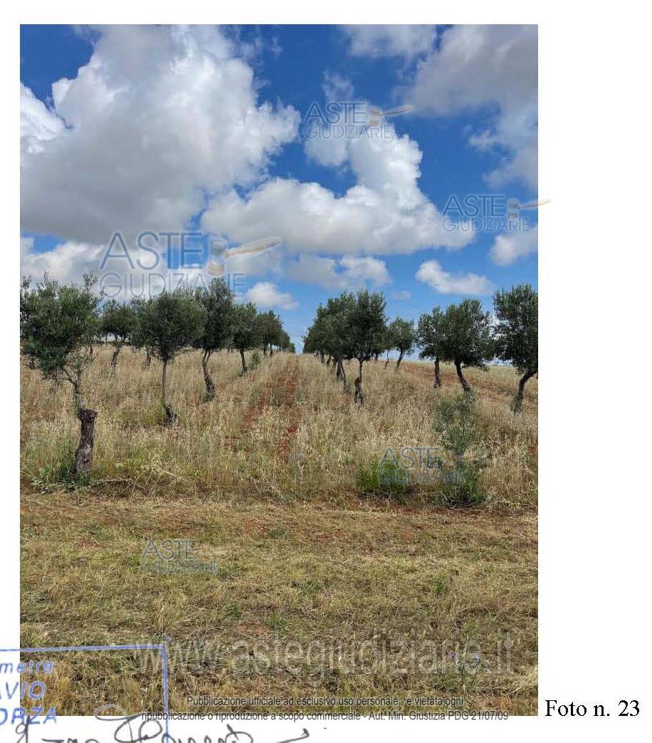 Pleine et parfaite propriété d'un terrain, d'une superficie totale d'environ 91 431 mètres carrés, situé dans la contrada "Martucci", ou "Foggia dell'Albero". Prezzo base € 95.736,00 (offerta minima € 95.736,00). Data inizio operazioni di vendita: 03/12/2025 ore 10:00. In caso di più offerte valide si procederà a gara che inizierà il 03/12/2025 ore 10:00 e terminerà il 10/12/2025 ore 10:00. Giudice Dott. Raffaella Simone. Rif. Tribunale di Bari - Nuovo concordato preventivo n. 37/2017