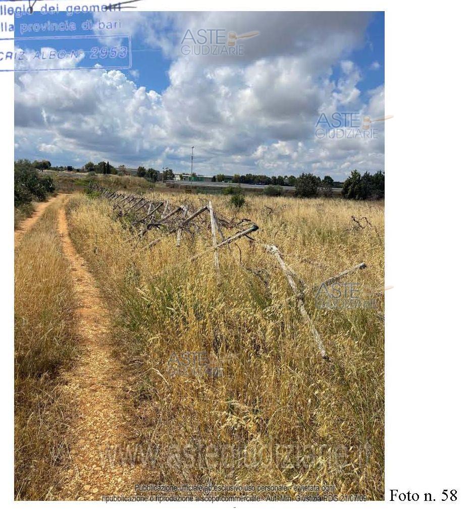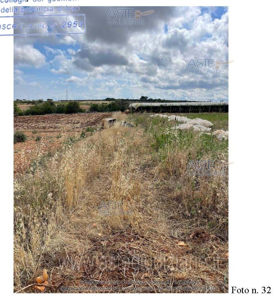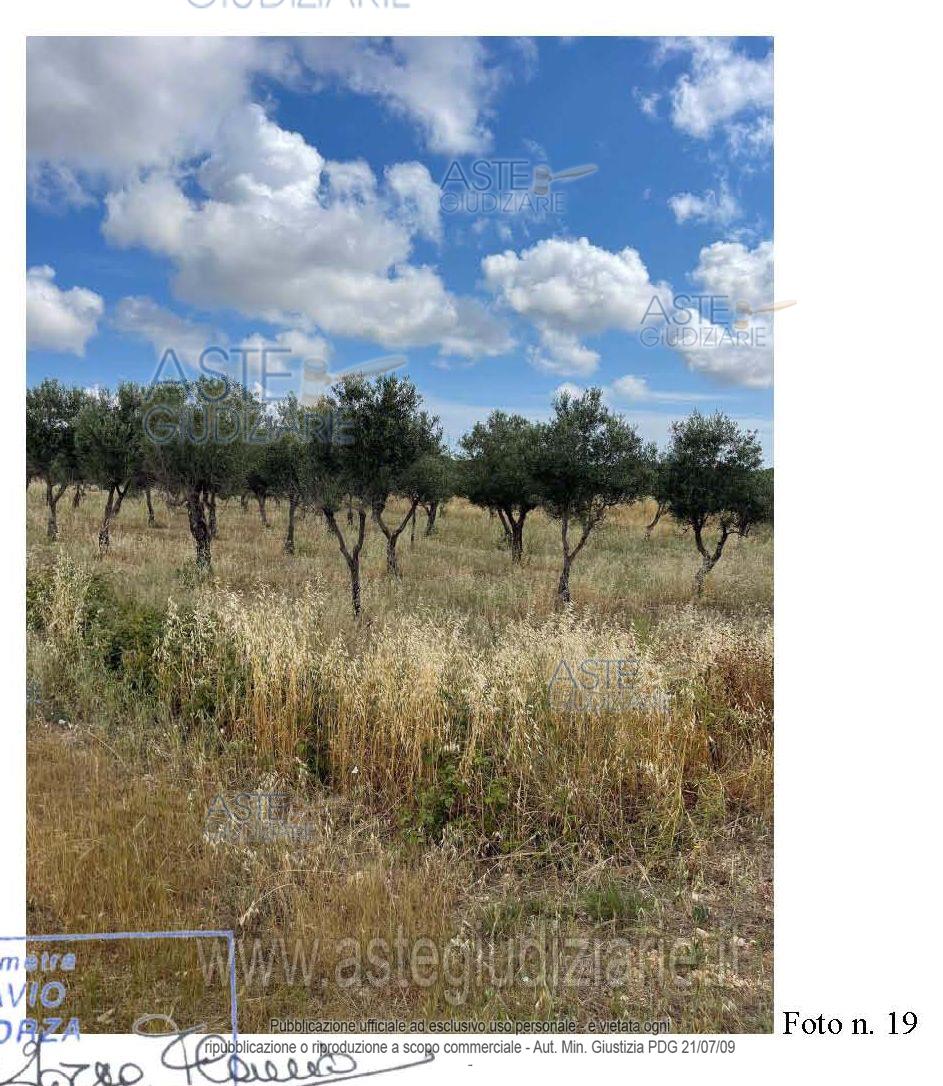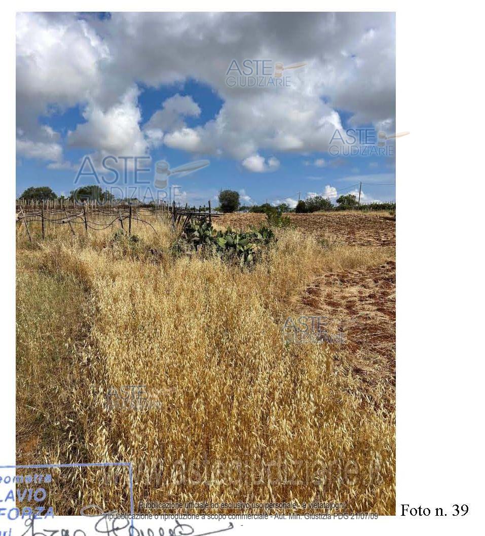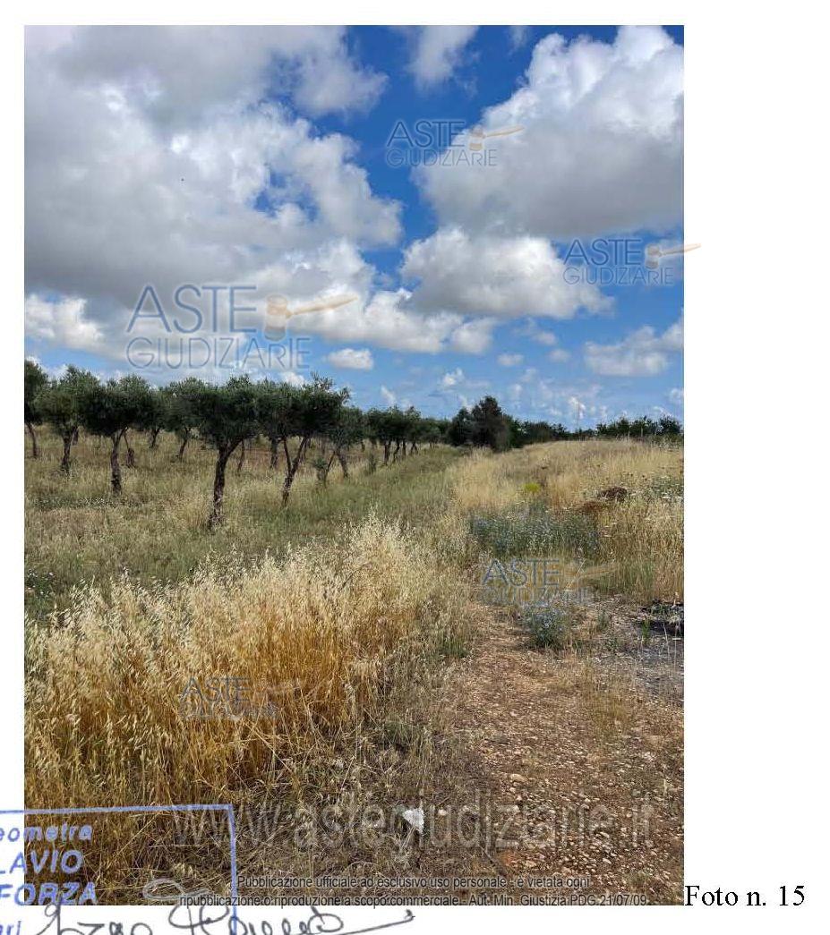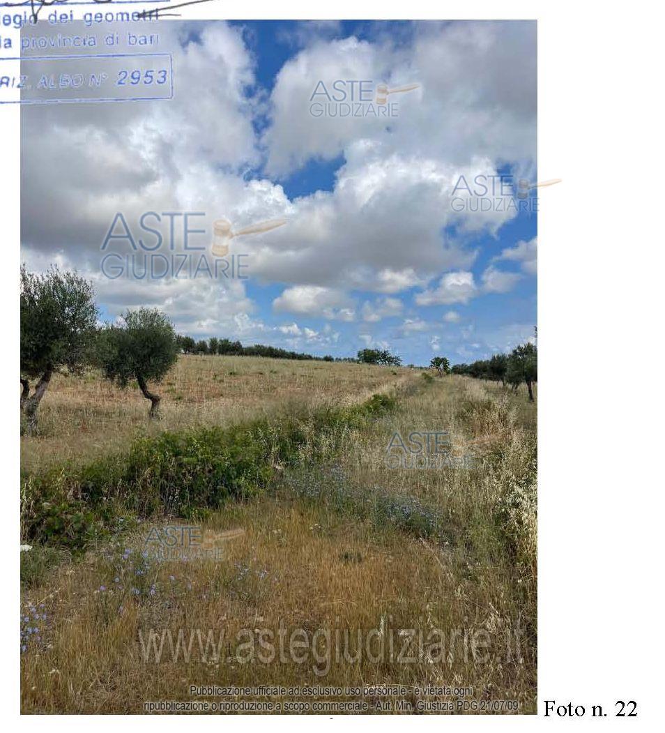 Pleine et parfaite propriété d'un terrain, d'une superficie totale d'environ 91 431 mètres carrés, situé dans la contrada "Martucci", ou "Foggia dell'Albero". Prezzo base € 95.736,00 (offerta minima € 95.736,00). Data inizio operazioni di vendita: 03/12/2025 ore 10:00. In caso di più offerte valide si procederà a gara che inizierà il 03/12/2025 ore 10:00 e terminerà il 10/12/2025 ore 10:00. Giudice Dott. Raffaella Simone. Rif. Tribunale di Bari - Nuovo concordato preventivo n. 37/2017