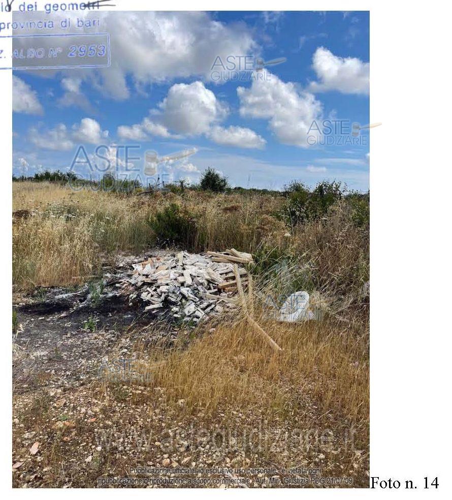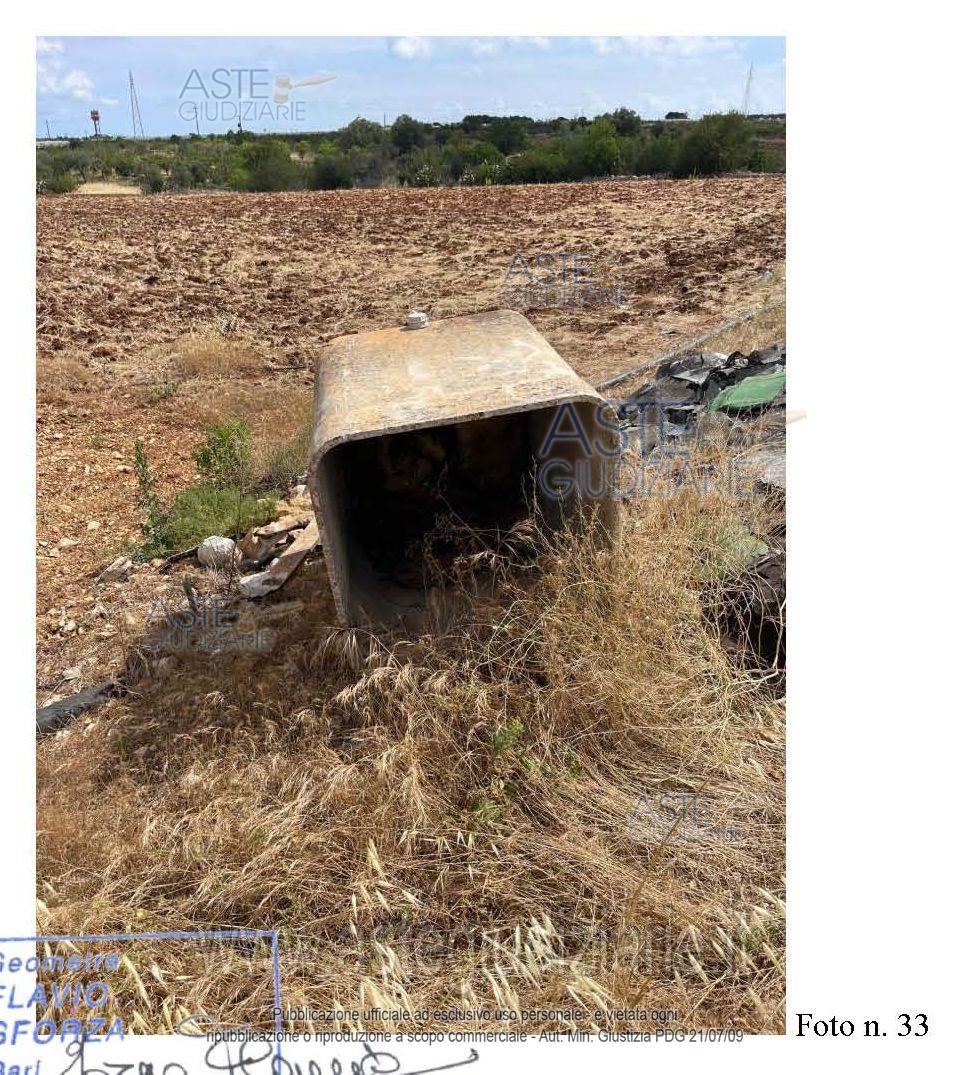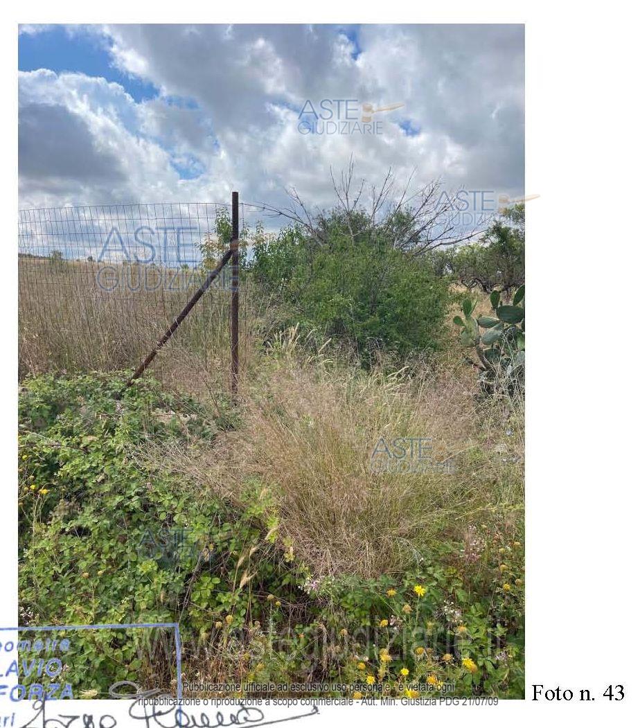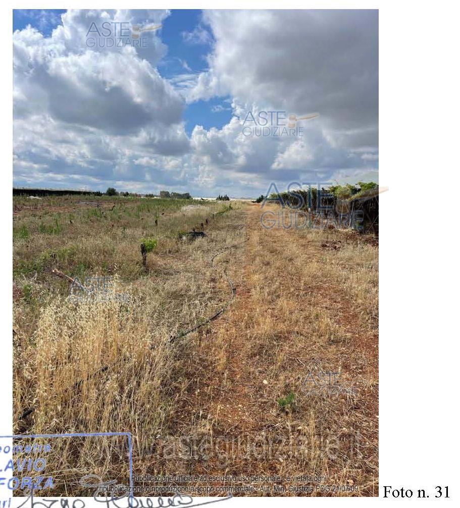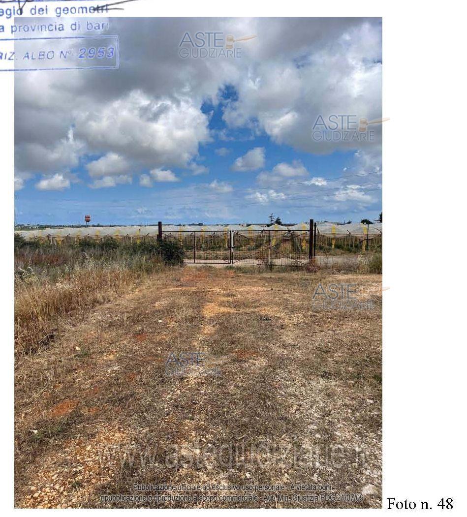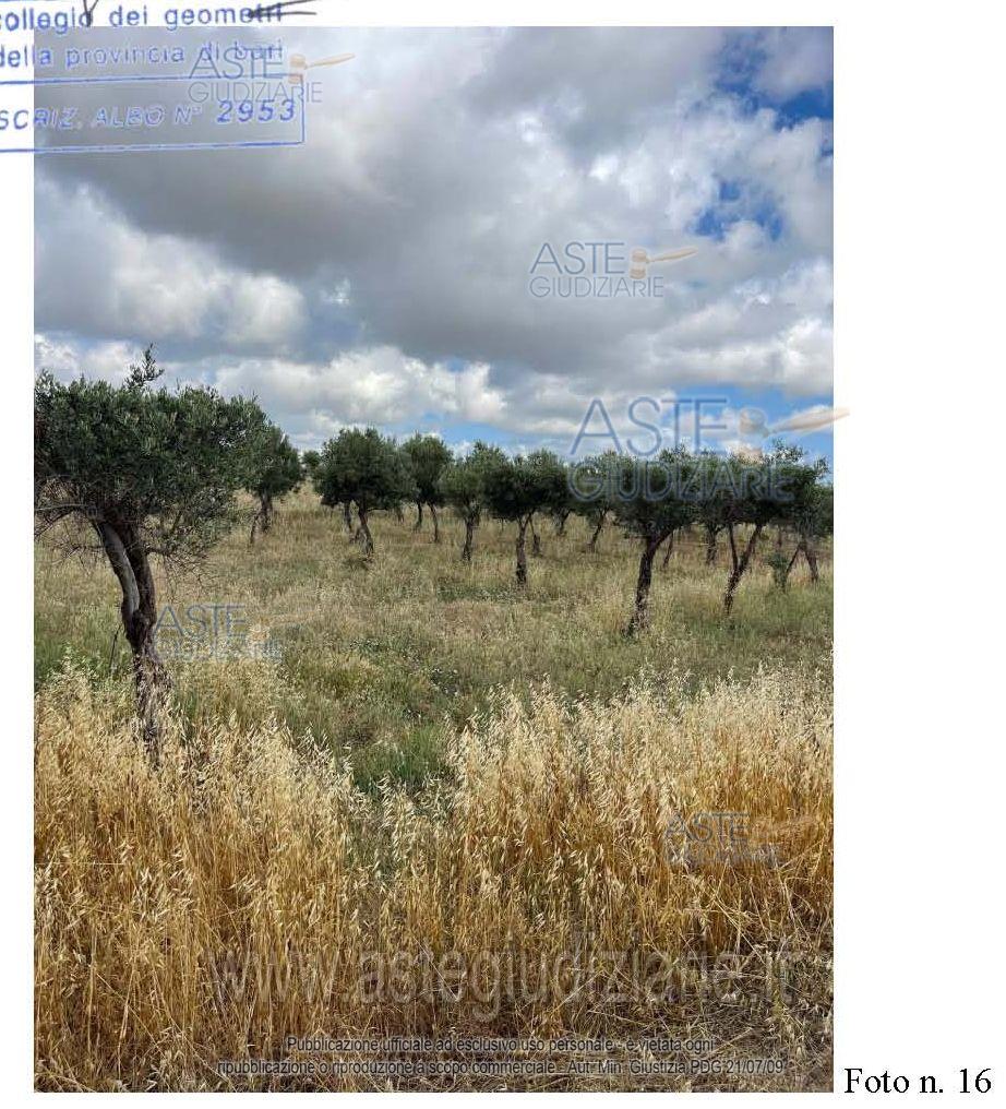 Pleine et parfaite propriété d'un terrain, d'une superficie totale d'environ 91 431 mètres carrés, situé dans la contrada "Martucci", ou "Foggia dell'Albero". Prezzo base € 95.736,00 (offerta minima € 95.736,00). Data inizio operazioni di vendita: 03/12/2025 ore 10:00. In caso di più offerte valide si procederà a gara che inizierà il 03/12/2025 ore 10:00 e terminerà il 10/12/2025 ore 10:00. Giudice Dott. Raffaella Simone. Rif. Tribunale di Bari - Nuovo concordato preventivo n. 37/2017