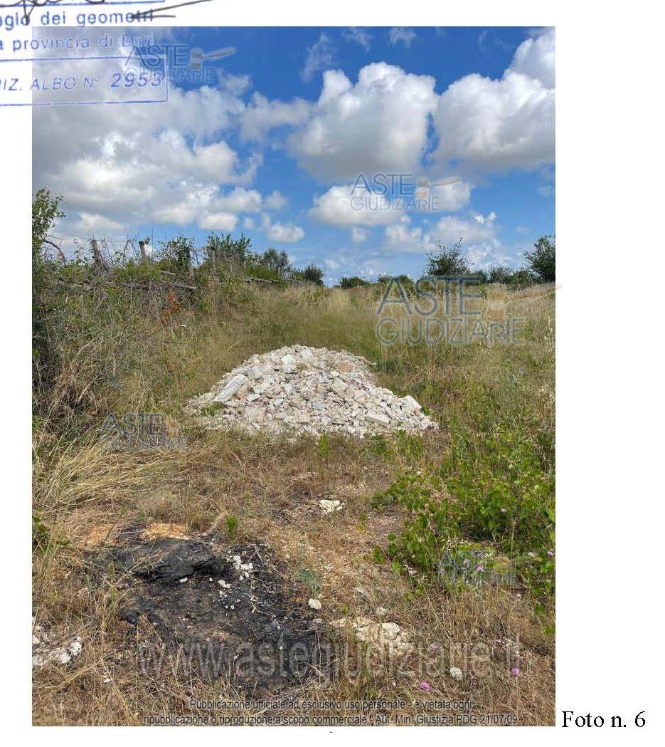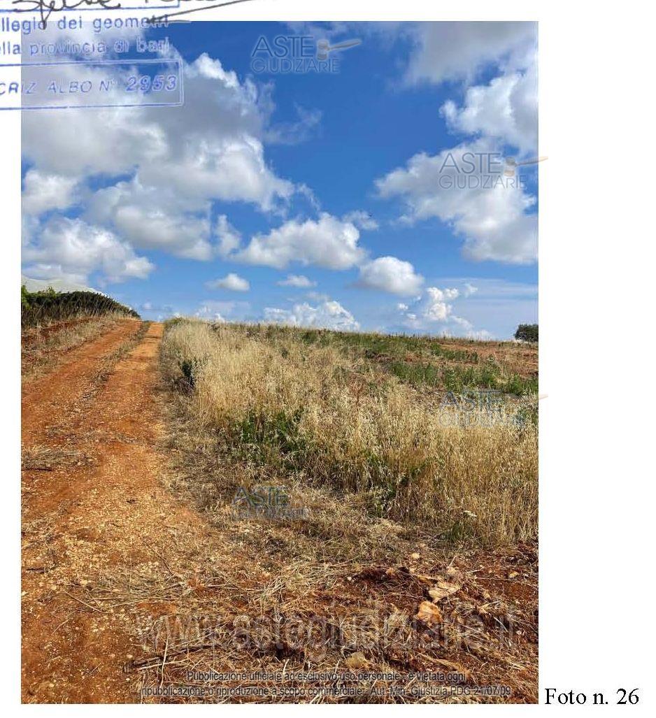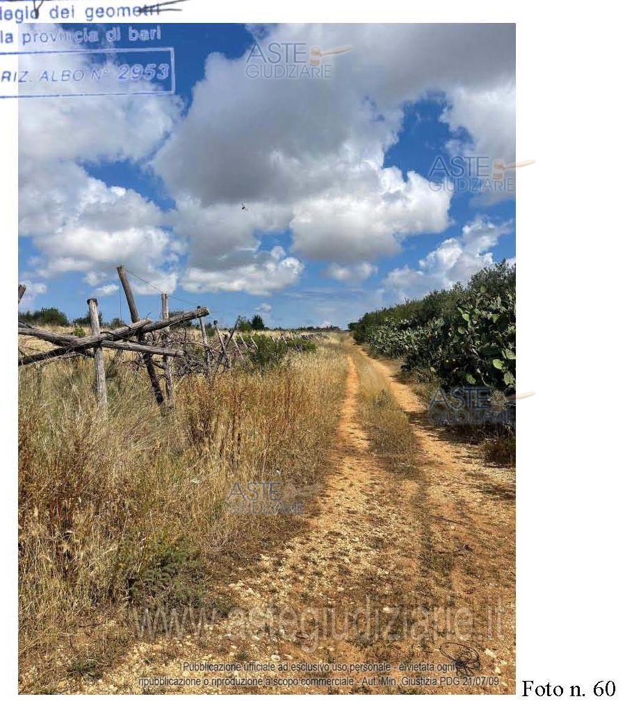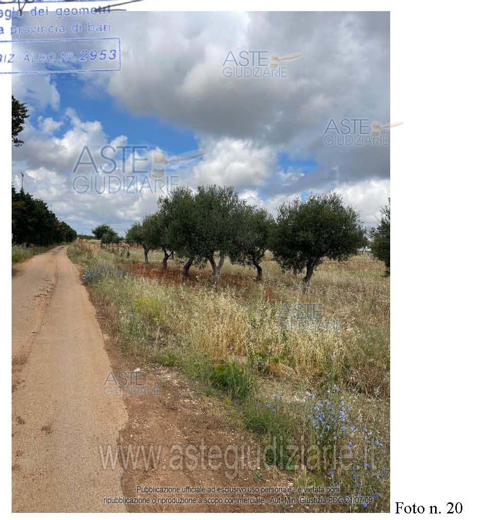 Full and perfect ownership of a plot of land, with a total area of approximately 91,431 square meters, located in the district "Martucci", or "Foggia dell’Albero". Prezzo base € 95.736,00 (offerta minima € 95.736,00). Data inizio operazioni di vendita: 03/12/2025 ore 10:00. In caso di più offerte valide si procederà a gara che inizierà il 03/12/2025 ore 10:00 e terminerà il 10/12/2025 ore 10:00. Giudice Dott. Raffaella Simone. Rif. Tribunale di Bari - Nuovo concordato preventivo n. 37/2017