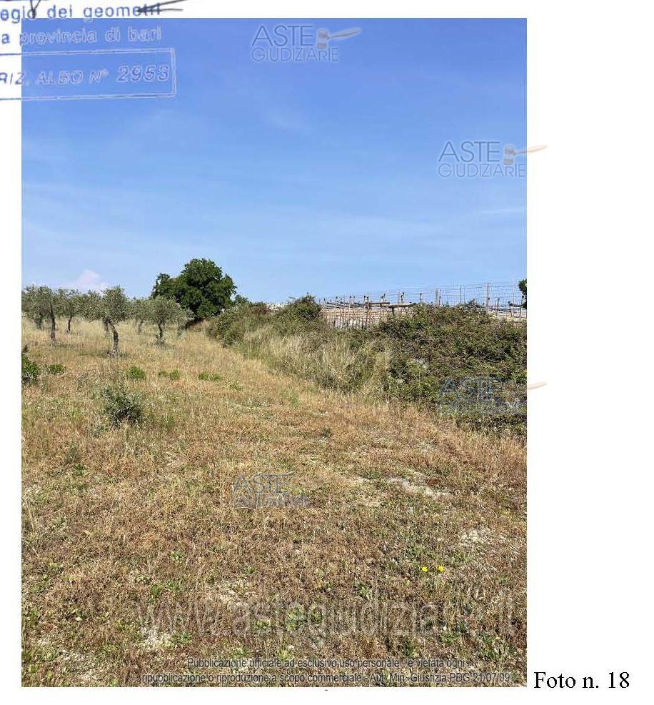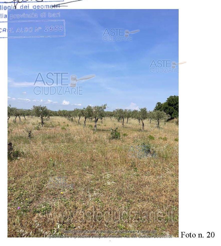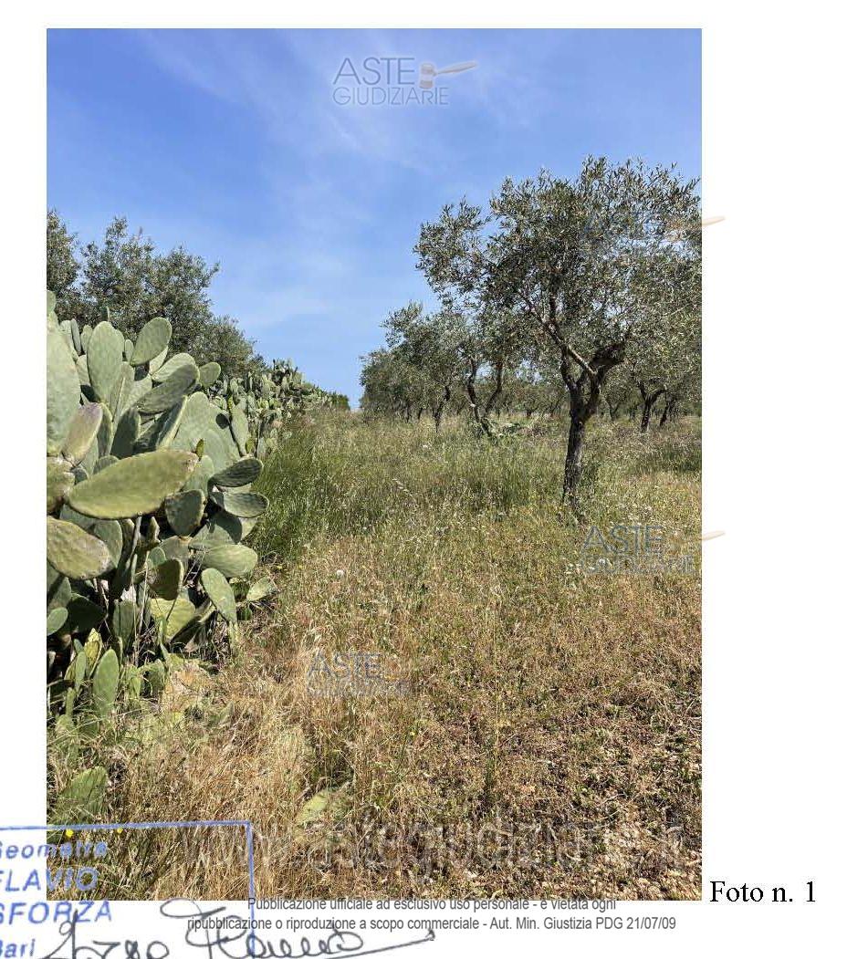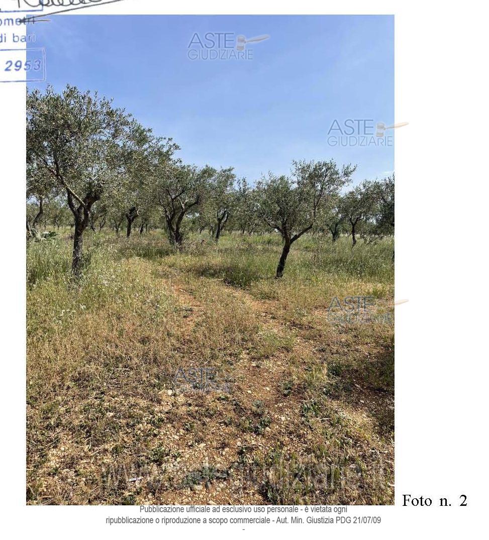 Vendita all'asta Senza incanto, con gara telematica asincrona - LOTTO 1(da A a V): LOTTO N. 1 (A-B-C-D-E-F-G-H-I-L-M-N-O-P-Q-R-S-T-U-V) Piena e perfetta proprietà di un terreno, coltivato ad uliveto, della superficie complessiva di metri quadri 42.841 circa, ubicato alla contrada “Martucci”, contrada “Cecirale” o “San Bartolomeo”, e contrada “La Petrosa. Prezzo base € 60.947,00 (offerta minima € 60.947,00). Data inizio operazioni di vendita: 03/12/2025 ore 10:00. In caso di più offerte valide si procederà a gara che inizierà il 03/12/2025 ore 10:00 e terminerà il 10/12/2025 ore 10:00. Giudice Dott. Raffaella Simone. Rif. Tribunale di Bari - Nuovo concordato preventivo n. 37/2017