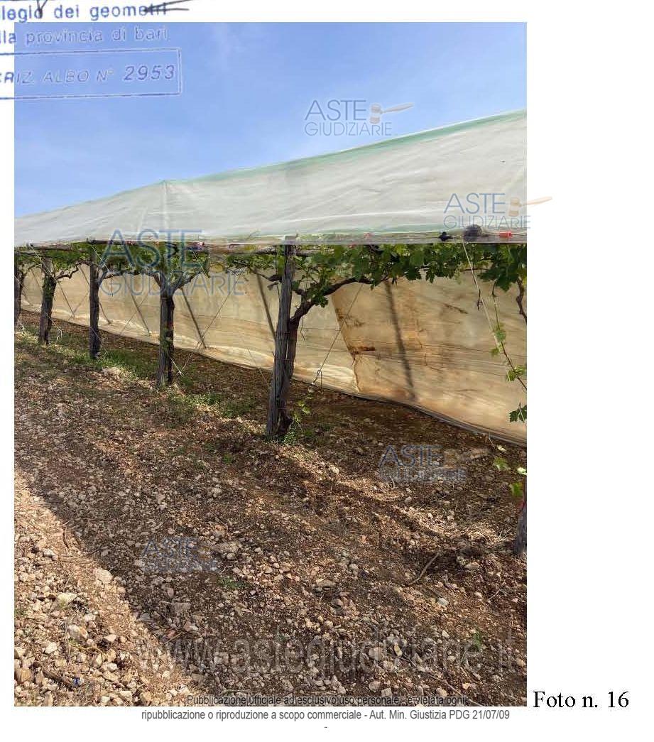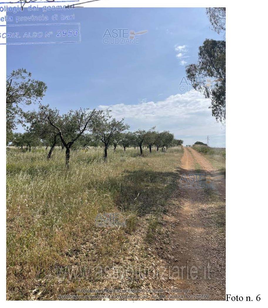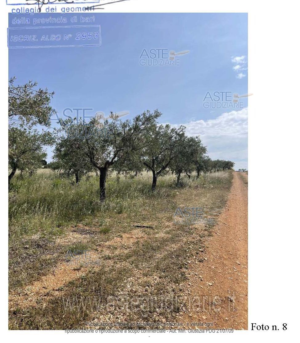 Vendita all'asta Senza incanto, con gara telematica asincrona - LOTTO 1(da A a V): LOTTO N. 1 (A-B-C-D-E-F-G-H-I-L-M-N-O-P-Q-R-S-T-U-V) Piena e perfetta proprietà di un terreno, coltivato ad uliveto, della superficie complessiva di metri quadri 42.841 circa, ubicato alla contrada “Martucci”, contrada “Cecirale” o “San Bartolomeo”, e contrada “La Petrosa. Prezzo base € 60.947,00 (offerta minima € 60.947,00). Data inizio operazioni di vendita: 03/12/2025 ore 10:00. In caso di più offerte valide si procederà a gara che inizierà il 03/12/2025 ore 10:00 e terminerà il 10/12/2025 ore 10:00. Giudice Dott. Raffaella Simone. Rif. Tribunale di Bari - Nuovo concordato preventivo n. 37/2017