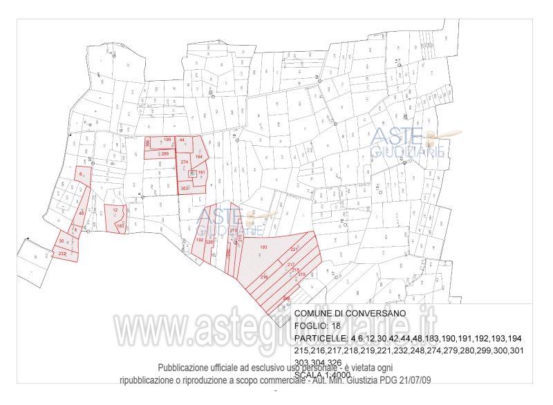 Vendita all'asta Senza incanto, con gara telematica asincrona - LOTTO 1(da A a V): LOS N. 1 (A-B-C-D-E-F-G-H-I-L-M-N-O-P-Q-R-S-T-U-V) Vollständiges und perfektes Eigentum eines Grundstücks, das mit Olivenbäumen bepflanzt ist, mit einer Gesamtfläche von etwa 42.841 Quadratmetern, gelegen im Ortsteil "Martucci", Ortsteil "Cecirale" oder "San Bartolomeo" und Ortsteil "La Petrosa". Prezzo base € 60.947,00 (offerta minima € 60.947,00). Data inizio operazioni di vendita: 03/12/2025 ore 10:00. In caso di più offerte valide si procederà a gara che inizierà il 03/12/2025 ore 10:00 e terminerà il 10/12/2025 ore 10:00. Giudice Dott. Raffaella Simone. Rif. Tribunale di Bari - Nuovo concordato preventivo n. 37/2017