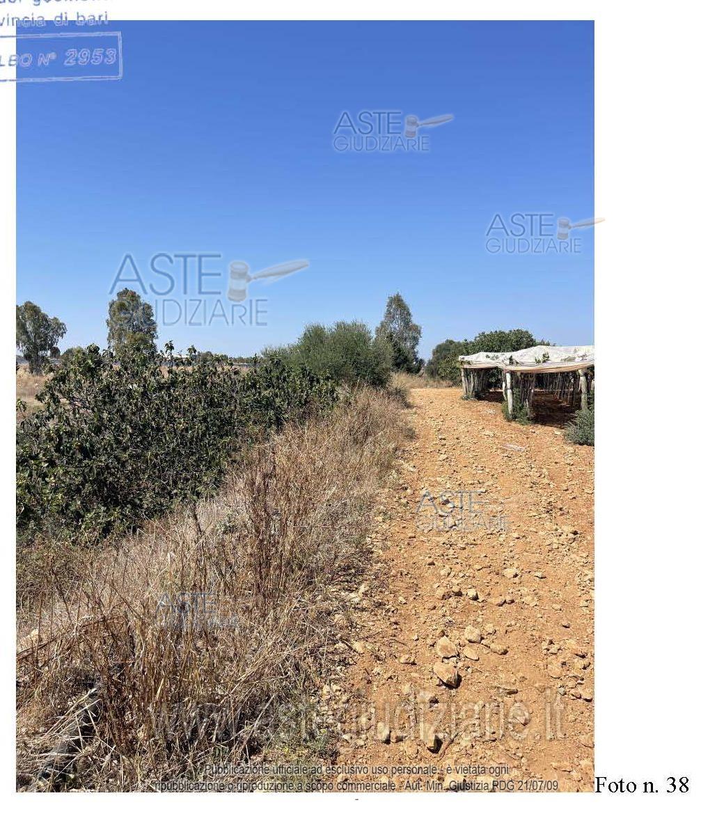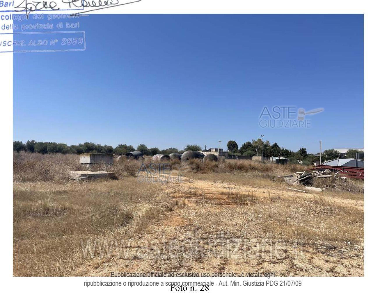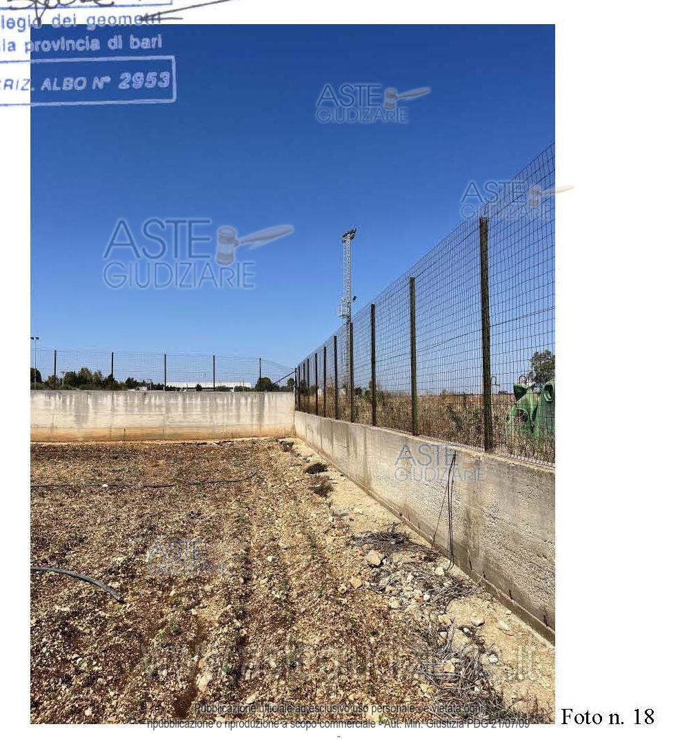 Pleine et parfaite propriété d'un terrain, d'une superficie totale d'environ 64 124 mètres carrés, situé dans les quartiers "Cireale" et "Martucci". Prezzo base € 17.348,00 (offerta minima € 17.348,00). Data inizio operazioni di vendita: 03/12/2025 ore 10:00. In caso di più offerte valide si procederà a gara che inizierà il 03/12/2025 ore 10:00 e terminerà il 10/12/2025 ore 10:00. Giudice Dott. Raffaella Simone. Rif. Tribunale di Bari - Nuovo concordato preventivo n. 37/2017