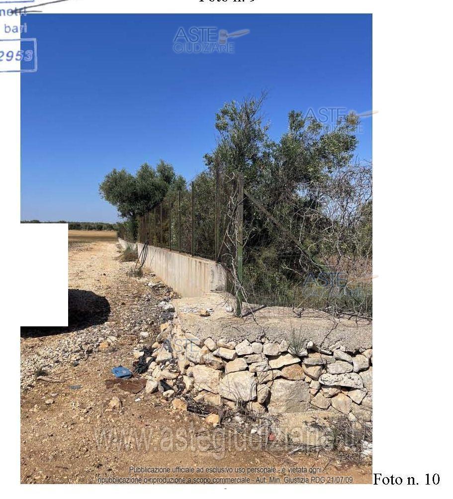 Vendita all'asta Senza incanto, con gara telematica asincrona - LOTTO 8BIS: LOTTO N. 8BISPiena e perfetta proprietà di un terreno, della superficie complessiva di metri quadri 64.124 circa, ubicato alla contrada “Cireale” e “Martucci”. Prezzo base € 17.348,00 (offerta minima € 17.348,00). Data inizio operazioni di vendita: 03/12/2025 ore 10:00. In caso di più offerte valide si procederà a gara che inizierà il 03/12/2025 ore 10:00 e terminerà il 10/12/2025 ore 10:00. Giudice Dott. Raffaella Simone. Rif. Tribunale di Bari - Nuovo concordato preventivo n. 37/2017
