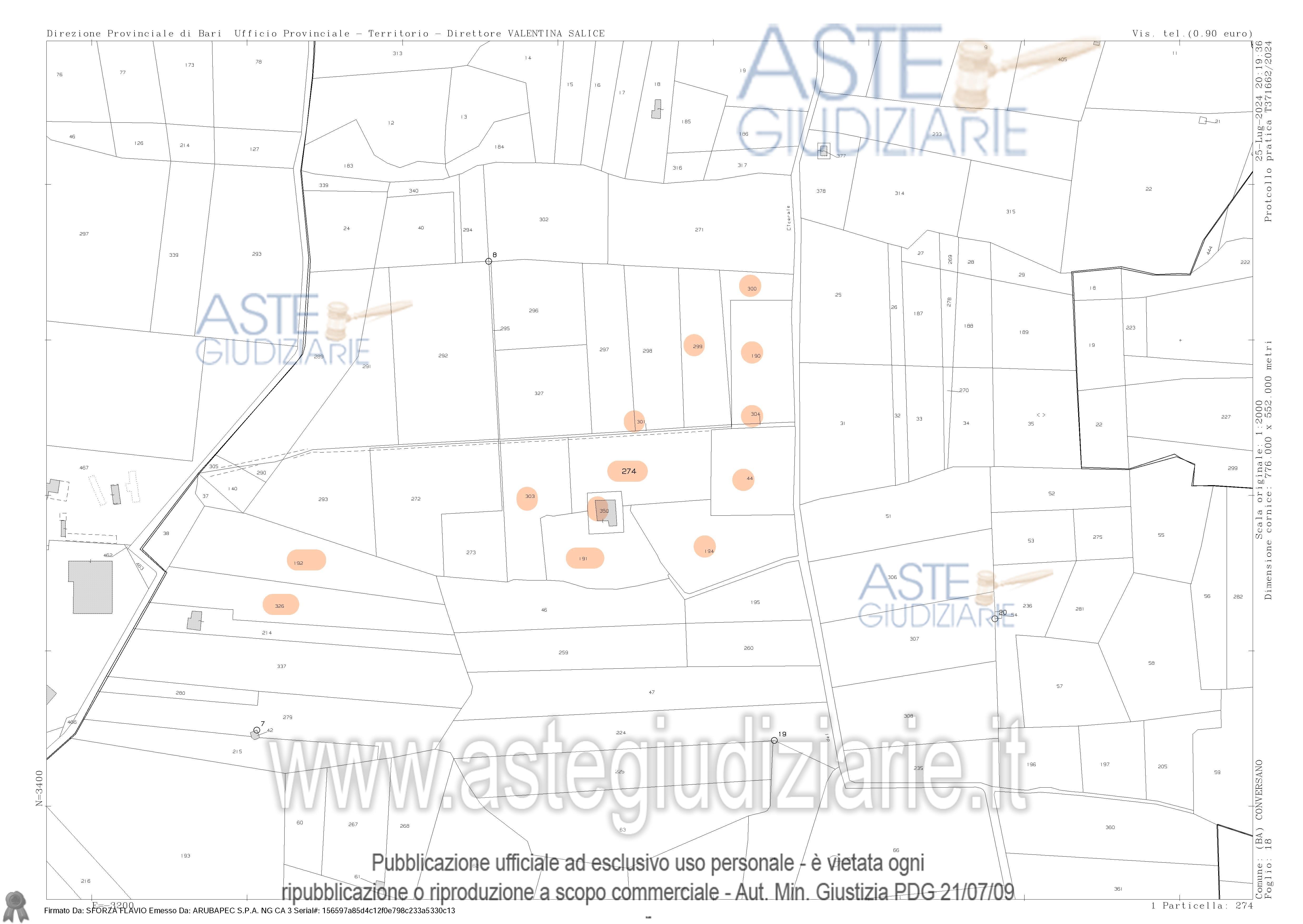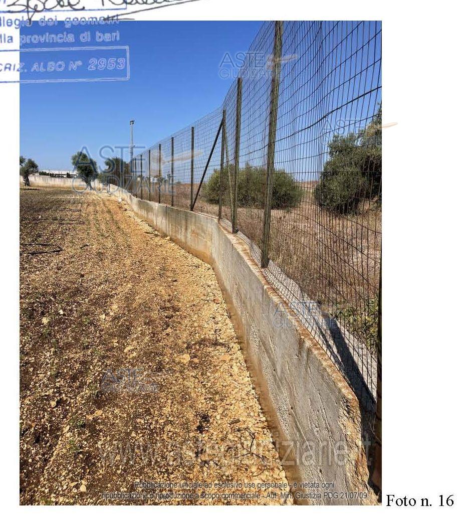 Vollständiges und volles Eigentum an einem Grundstück mit einer Gesamtfläche von ca. 64.124 Quadratmetern, gelegen in der Gegend "Cireale" und "Martucci". Prezzo base € 17.348,00 (offerta minima € 17.348,00). Data inizio operazioni di vendita: 03/12/2025 ore 10:00. In caso di più offerte valide si procederà a gara che inizierà il 03/12/2025 ore 10:00 e terminerà il 10/12/2025 ore 10:00. Giudice Dott. Raffaella Simone. Rif. Tribunale di Bari - Nuovo concordato preventivo n. 37/2017