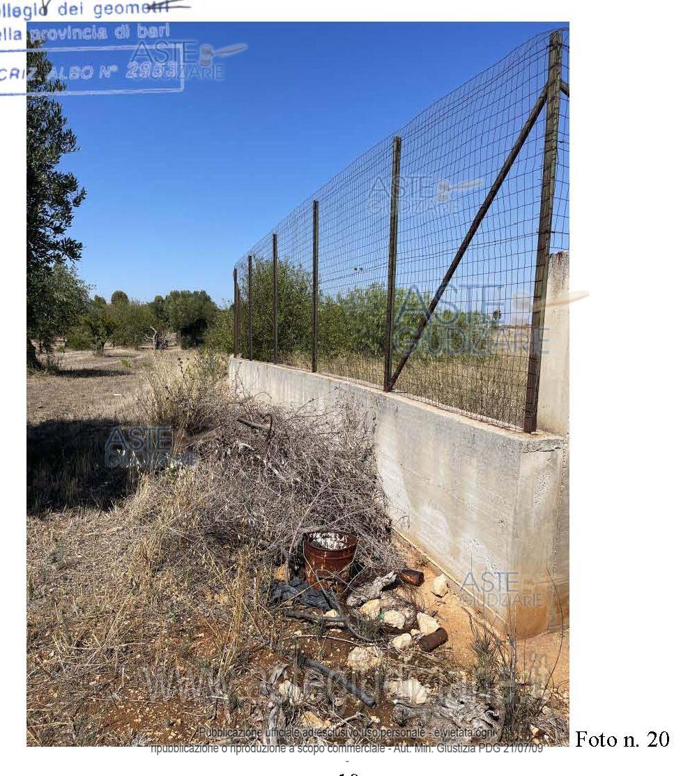 Full and perfect ownership of a plot of land, with a total surface area of approximately 64,124 square meters, located in the area of "Cireale" and "Martucci". Prezzo base € 17.348,00 (offerta minima € 17.348,00). Data inizio operazioni di vendita: 03/12/2025 ore 10:00. In caso di più offerte valide si procederà a gara che inizierà il 03/12/2025 ore 10:00 e terminerà il 10/12/2025 ore 10:00. Giudice Dott. Raffaella Simone. Rif. Tribunale di Bari - Nuovo concordato preventivo n. 37/2017