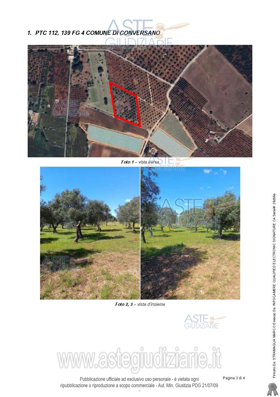 Vendita all'asta Senza incanto, con gara telematica asincrona - LOTTO UNICO: Piena proprietà di fondo rustico di superficie pari a 1.086,00 mq e fondo rustico di superficie pari a 9.860,00 mq. I terreni risultano ben coltivati, di forma complessivamente regolare, e risultano accessibili per il tramite di un varco praticato nel muretto a secco che segna il confine nord della proprietà. L’intera area è improntata, per la quasi totalità, da arboricoltura dell’ulivo (oltre 100 alberi) alternato alla sporadica presenza di altri alberi da frutta, mandorli, ciliegi, nocciole ecc. Prezzo base € 15.750,00 (offerta minima € 9.940,00). Data inizio operazioni di vendita: 01/07/2026 ore 17:30. Giudice: Dott. Antonio Ruffino.